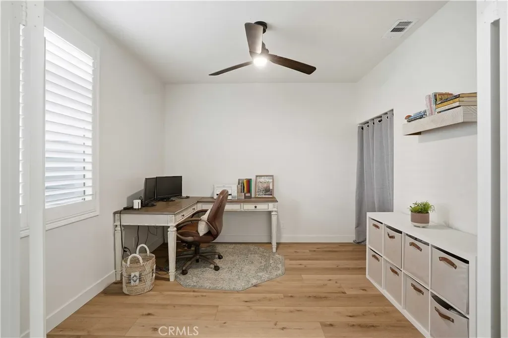 Additional interior improvements include new HVAC registers, upgraded ventilation fans in both bathrooms and the laundry room, a corrected electrical panel, and a custom closet organizer for added functionality. Plantation shutters, curtain rods, and curtains add both style and convenience.