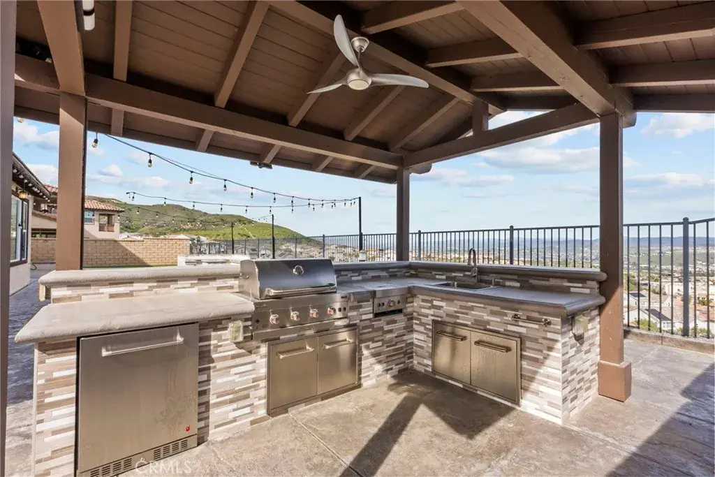 Luxury Living with Sweeping Panoramic VIEWS in prestigious Aliento! Welcome to an exceptional residence in the highly sought-after, gated Cresta community of Aliento — a hidden gem in the Santa Clarita Valley. This beautifully upgraded 5-bedroom and 5-bathroom home offers 4,023 square feet of refined living space, thoughtfully designed for everyday comfort and upscale entertaining. A bright open-concept floor plan is enhanced by newly installed wood-style flooring throughout and fresh interior paint, creating a modern and sophisticated ambiance. The main level features a private downstairs bedroom, living quarters with a full bathroom that is ideal for guests or multigenerational living, plus a dedicated bonus room currently used as a home office, conveniently located near the first-floor laundry room. Fully paid-off owned solar panels provide long-term efficiency & added value. At the heart of the home, the chef’s kitchen impresses with an oversized center island, granite countertops, premium stainless-steel appliances, a gas cooktop, double ovens with convection, soft-close cabinetry, and a spacious walk-in pantry — perfectly appointed for culinary enthusiasts and entertainers alike. Upstairs, a generous loft provides flexible living space for a media lounge, playroom, or family retreat. The primary suite is a true sanctuary, showcasing breathtaking mountain & valley views, a spa-inspired bathroom with a freestanding soaking tub, a walk-in shower, dual vanities, and an expansive walk-in closet! Step outside to an entertainer’s dream backyard, beautifully designed with custom stamped concrete, a striking blue-glass gas firepit, and a covered outdoor kitchen complete with built-in BBQ, cooktop burner, sink, and refrigerator. Ideal for evening gatherings or relaxing under the stars. Residents of Aliento enjoy a resort-style lifestyle with access to a clubhouse, adult and children’s pools, jacuzzi, fitness center, dog park, and private community park! Ideally located near a wide array of excellent shopping, dining, parks, and scenic hiking trails. This home perfectly blends luxury, convenience, and natural beauty. A rare opportunity to own in one of Santa Clarita’s most desirable communities. Experience elevated living in Aliento — where luxury meets lifestyle!