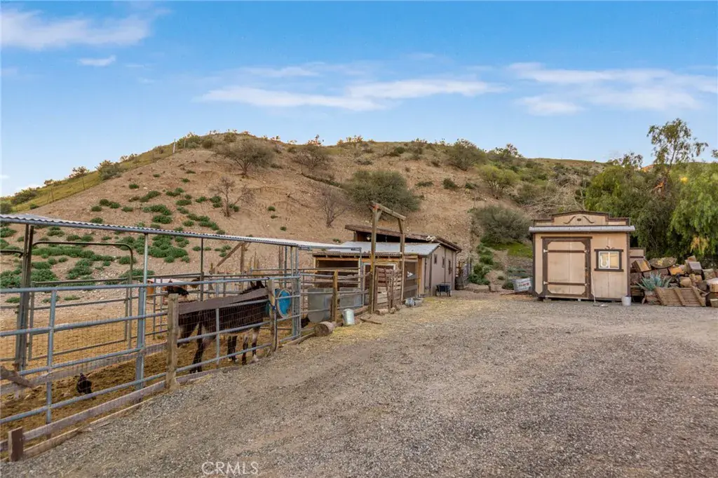 Welcome to this beautifully updated single-story home offering 2,388 sq ft of living space on a fully fenced and gated 2.67-acre lot. The main residence features 4 bedrooms, 1 full bath, 1 three-quarter bath, and 1 half bath, with a renovated kitchen, bathrooms, and laundry area. A two-stall carport and charming center courtyard with trellis and mature landscaping enhance the home’s inviting appeal. As you enter the property, you’re greeted by a tranquil pond and a large newer planter showcasing olive trees and roses. The grounds are rich with established fruit trees and rose bushes throughout. Ideal for animal lovers, the property includes a large pasture with two enclosed corrals, an additional enclosable area with covered structure for large animals, a chicken coop with hen boxes, and an extra-large dog kennel. Five exterior storage sheds are also included.