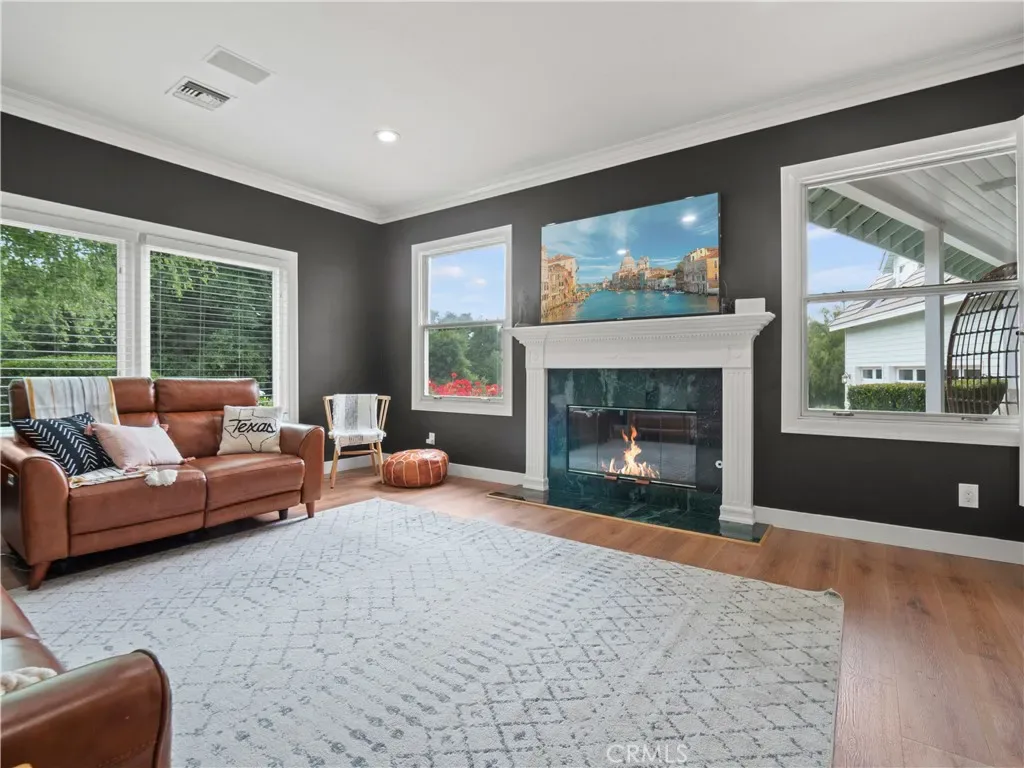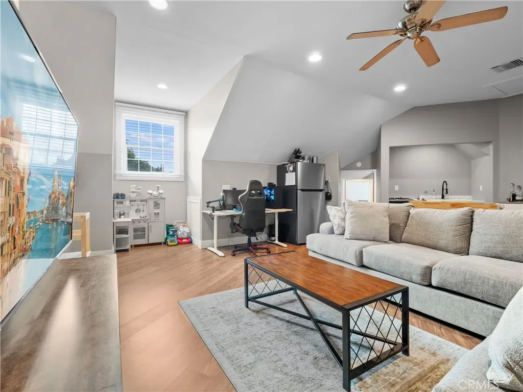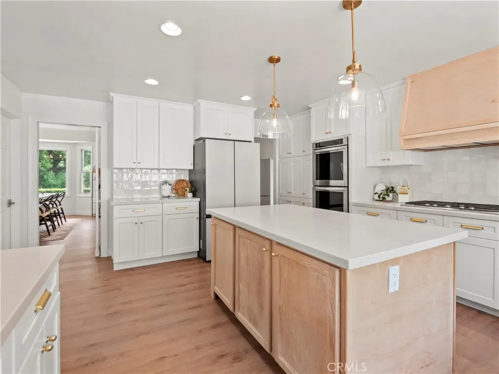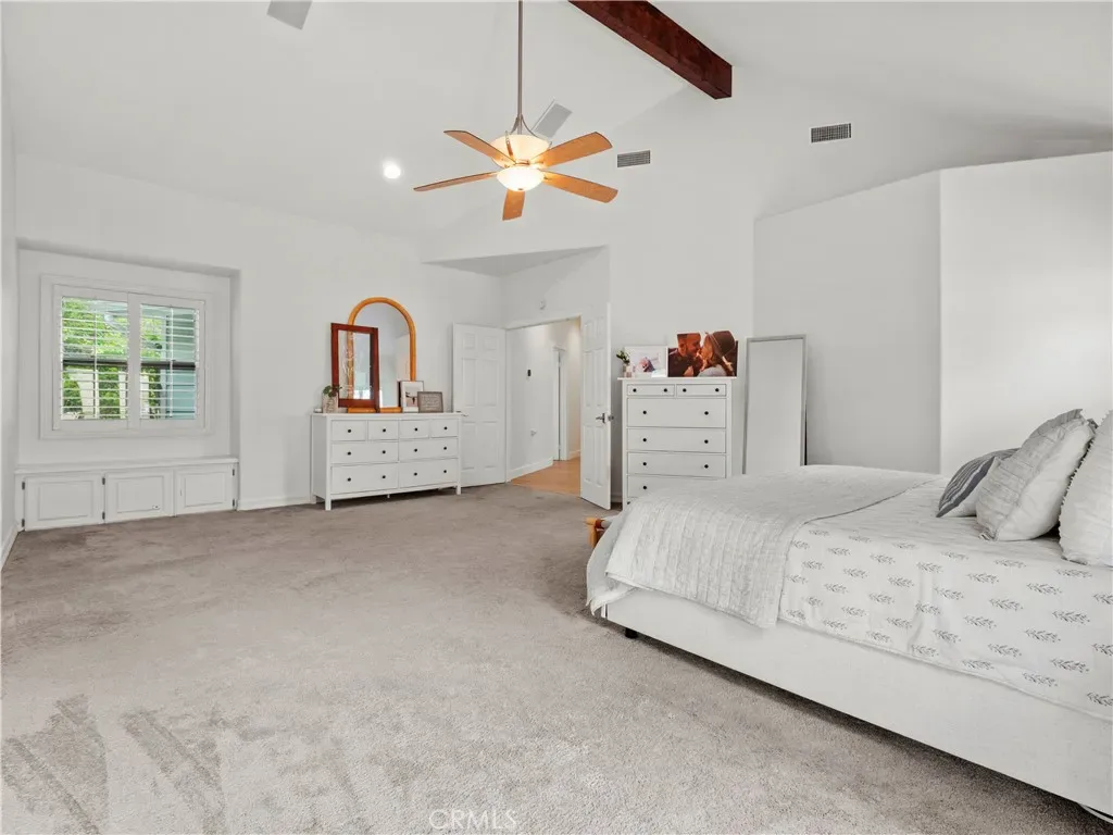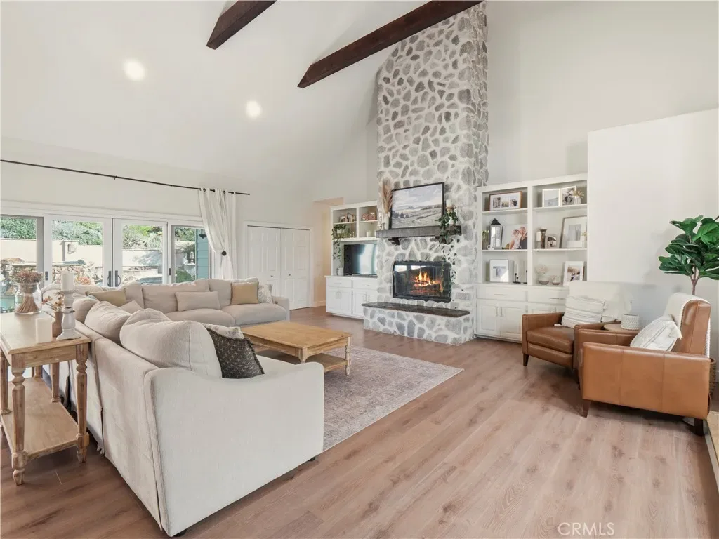 Luxurious Custom Sand Canyon Pool Home, on a private Cul-de-sac that lives like a 4 Bed+ 4 Bath+Office/Den Single Story Home w/an additional 1K sq ft apartment style quarters that could be ADU or even additional living for the main house! This exquisite property boasts a 3-car garage, RV & toy parking, all set on a private secluded lot! Designed for convenience, the main house lives like a single-story, w/ 4 Beds plus a den, while the ADU includes a HUGE living area, kitchenette, & 2 additional beds. Enjoy summer nights or sunrise mornings on your inviting front porch. Step into the formal living room, where you’ll be captivated by 30-foot beamed ceilings, dbl French doors overlooking the stunning yard, & a massive floor-to-ceiling stone fireplace w/mantel, hearth, & built-in storage. The newly remodeled chef’s eat-in kitchen is a culinary dream, with a huge center island, breakfast nook, breakfast bar, white quartz counters, custom backsplash, upgraded appliances, beautiful pendant lighting, dbl oven, & an expansive butler’s pantry w/laundry, second fridge, ample storage, & a powder room perfect for guests. A formal dining room & den, w/double door entry, can easily be converted to a 5th bed, highlighting a cozy fireplace & and tons of windows. The primary suite is a dream, w/ a double door entry, high beamed ceilings, window seat w/ storage & a spa-like en-suite bath that includes dual sinks, marble counters, a huge soaking tub, & a glass-enclosed walk-in shower. There are 3 additional large bedrooms all w/ceiling fans, & window seating w/storage. The second level features an ADU, w/high ceilings, a spacious living, kitchenette, bathroom w/ glass-enclosed shower, & a spacious bedroom w/ an ensuite room that could serve as a nursery, gym, or home office, complete w/a deck offering beautiful views or if you don’t need an ADU then it would be a great theater, game room or just a loft for the family! Interior features include fresh paint, new flooring, zoned AC, a separate breaker for the ADU, new interior doors, & freshly painted cabinetry w/upgraded hardware. The exterior boasts an oversized 3-car garage w/ a new AC unit, a circular driveway for convenience, & ample space for an RV or toys. The entertainer’s backyard features a sparkling pebble tech pool & spa, sunbathing area, stamped concrete, and an outdoor cooking station with a kegerator. The side yard is perfect for corn hole or bocce ball. Don’t miss this opportunity to own this incredible home!
