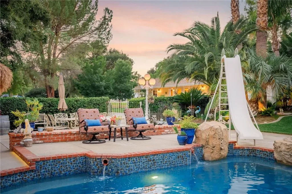 $100K PRICE ADJUSTMENT! Four Homes. 3.8 Flat, Usable Acres. Resort Backyard. DOUBLE RV GARAGE. Total Privacy. This Place Has It All! Tucked away on 3.8 completely flat, usable acres, this private Sand Canyon estate is unlike anything you’ve seen before. The main home spans nearly 3,500 sq ft with 4 bedrooms, 3 bathrooms, and 5-car garages—all designed to live like a single story. Every inch has been beautifully updated and meticulously maintained, with an upstairs retreat featuring a full bar, office, and an 800-bottle wine cellar. Built for entertaining, the home includes indoor/outdoor audio and opens to a Tommy Bahama–inspired resort backyard—a true showstopper with a massive rock waterfall, fire features, 11-foot slide, sparkling pool, fire pit, gazebo, and outdoor kitchen surrounded by lush, tropical landscaping. In addition to the main residence, the property features THREE GUEST HOUSES.
