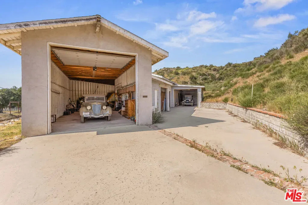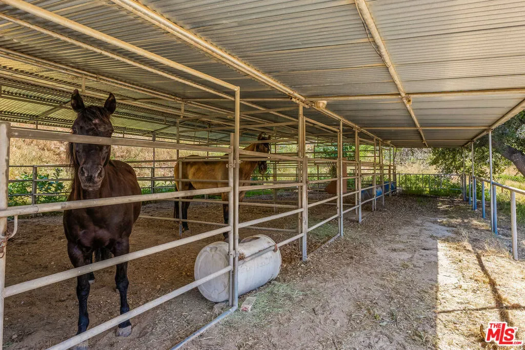 Nestled in the highly sought-after Sand Canyon area of Santa Clarita, this private ~2.5-acre retreat offers an exceptional blend of rural charm and modern comfort. The property features a resort-style pool and an impressive 2,200+ sq. ft. detached multi-car garage/shop, ideal for a variety of uses. Designed with versatility in mind, this equestrian-friendly estate is located just moments from Sand Canyon Country Club and miles of scenic riding and hiking trails, making it perfect for those seeking space, privacy, and an active outdoor lifestyle. Set on expansive grounds with thoughtfully designed equestrian facilities, the property features covered horse stalls, hay storage, and a tack room. A fenced ~3/4-acre parcel of open land further enhances the property’s versatility ideal for equestrian use, grazing, or future improvements. This generous space provides ample room for horses to roam while offering flexibility for possible additional facilities, recreation, or customization to suit a variety of needs. The 2,684 sq. ft. home offers 4 bedrooms and 3 bathrooms, thoughtfully designed with both functionality and character in mind. Inside, you’ll find soaring wood-beamed ceilings in the living and family rooms, each anchored by its own wood-burning fireplace, creating a warm and inviting atmosphere. The spacious kitchen is built for both everyday living and entertaining, complete with a large center island and a professional-grade 4-burner stainless steel stove with double oven, grill and griddle. Adjacent to the kitchen is a spacious downstairs bedroom and a hall bath with shower. Primary suite serves as a relaxing retreat with dual vanities and ample space. Additional highlights include a full laundry room downstairs and a convenient stackable laundry setup upstairs. Step outside to your private backyard oasis featuring an in-ground pool and spa, along with a covered outdoor kitchen/entertainment area complete with a stainless steel BBQ perfect for hosting gatherings year-round. Car enthusiasts, hobbyists, and those in need of extra storage will appreciate the impressive (approx) 2,284 sq/ft. detached garage/shop with RV storage, offering endless possibilities. Combining equestrian amenities, spacious living, and resort-style outdoor features, this rare Sand Canyon property delivers the best of country living with close proximity to all the conveniences of Santa Clarita.