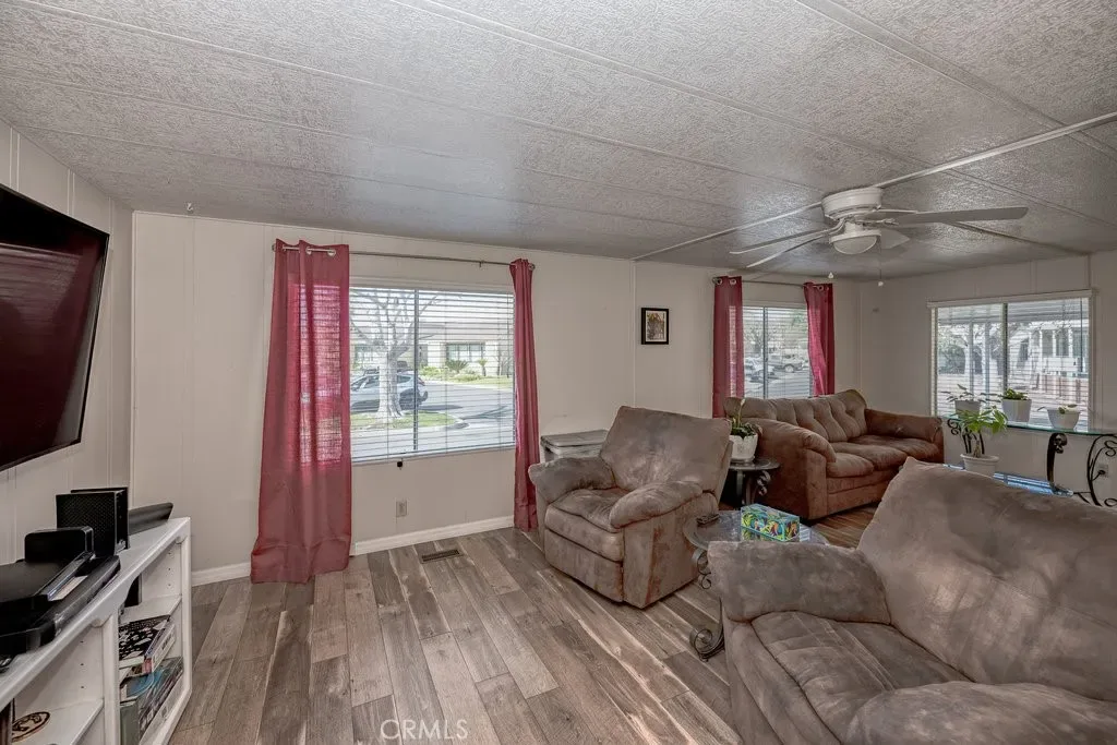 LOCATION, LOCATION, LOCATION! One of the few homes that has its own FRONT YARD! Located on one of the larger lots with a backyard and grassy front yard! The unit sits at an angle where you can sit on the patio and enjoy the comfort of your wide yard similar to what you just left! The front entrance has 3-4 steps, and the side entrance has a ramp to your new home-something a lot of homes don’t have!. Imagine your morning coffee on this expanded porch or relaxing in the evening with a gentle breeze. You also have the advantage of shade trees! All the fun of the rex rooms and pool is walking distance from your new home! You don’t have to get into your car to get there! This home has been upgraded with luxury vinyl flooring, a new oven and has inside washer and dryer! This open floorplan has 2 good size bedrooms and 2 full bathrooms! The kitchen is open to the dining room along with a kitchen island and plenty of room for family or visitors! The primary bedroom has 2 closets and an attached bathroom already equipped with grab bars. Ceiling fans thru out the home. Here’s a great home to downsize and live a relaxing lifestyle! Pets are allowed!! Don’t miss out on this location!