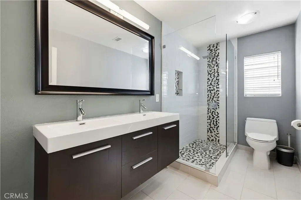 A large open loft with wood flooring provides a wonderful extra living space or could easily serve as a 4th bedroom. Both secondary bedrooms are generously sized. The hall bathroom has been tastefully remodeled with a large step-in glass shower and custom tile.