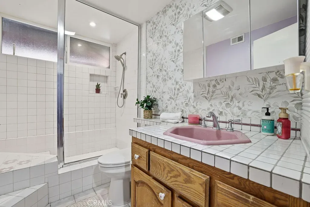 The backyard offers a private pool paradise with a covered patio, multiple entertaining areas, and an elevated pergola in addition to terraced areas ready to put your green thumb to use! The sparkling pool and backyard are perfect for relaxing or hosting. Pool has newer equipment and newer heater for added value. There’s also an outdoor bathroom for more added convenience.