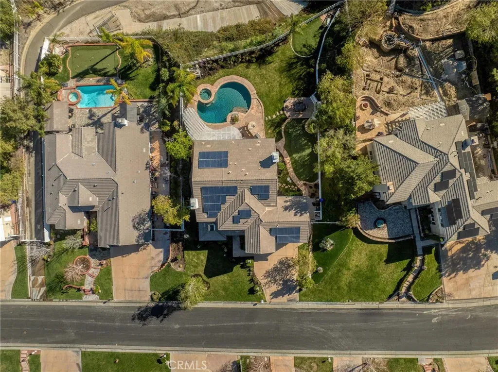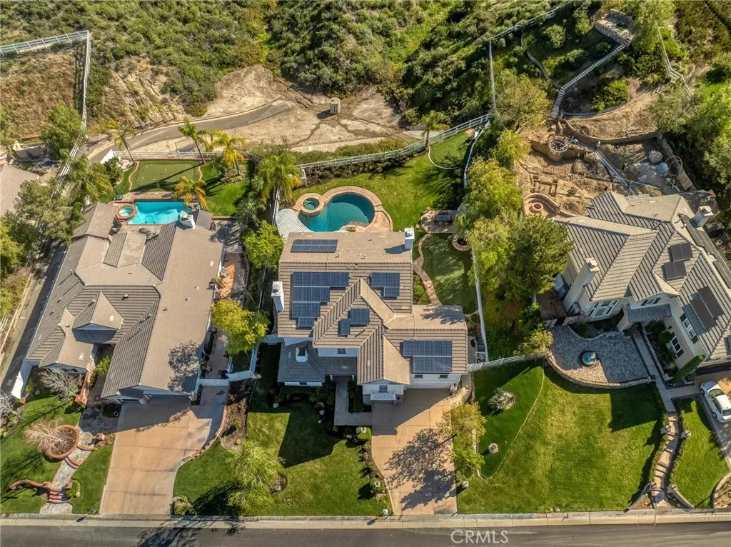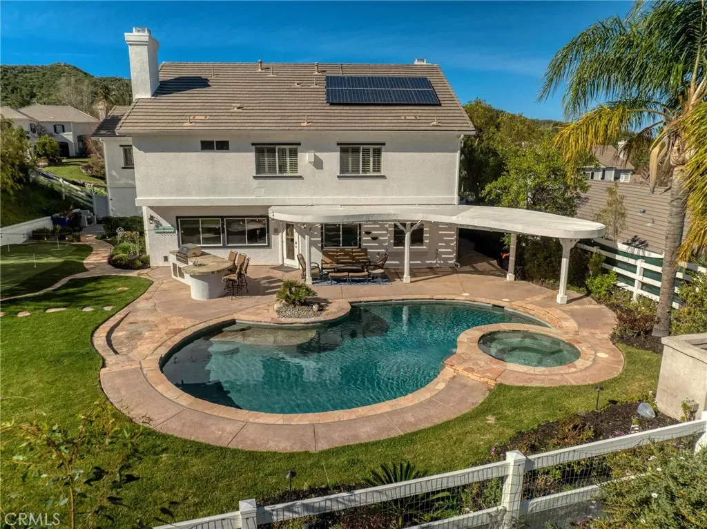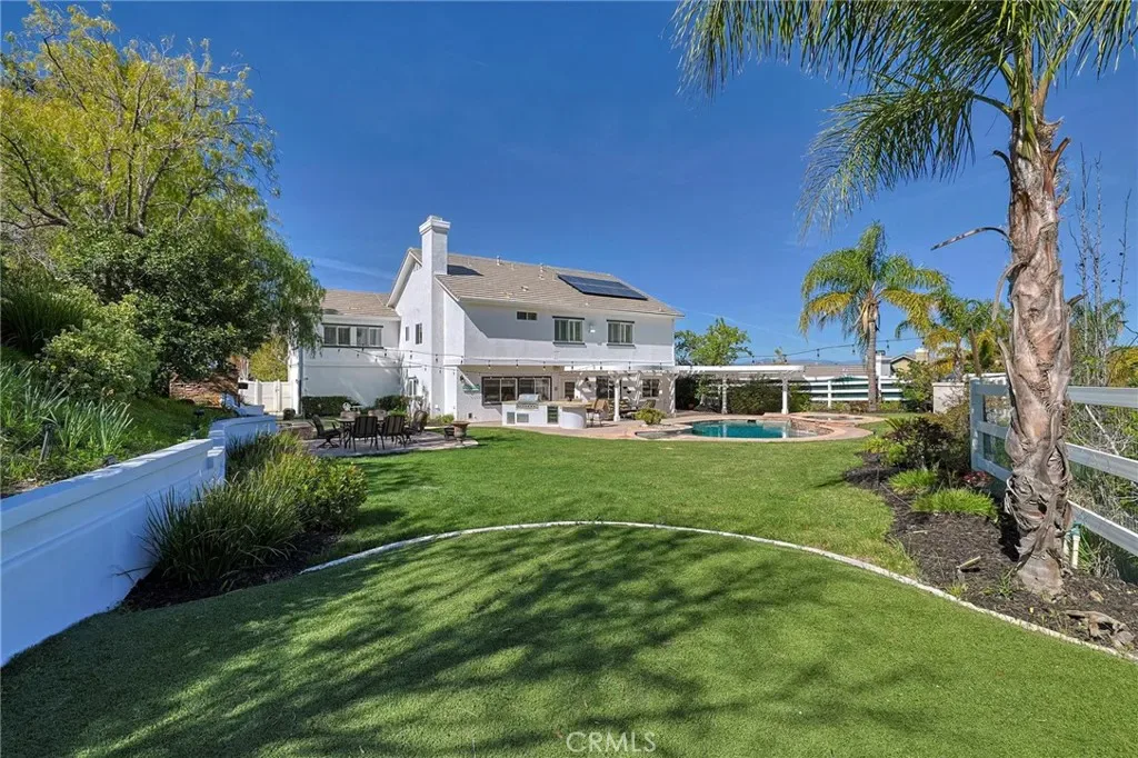 Step outside to a resort-style backyard designed for the Southern California lifestyle, featuring a pool, spa, outdoor kitchen, fireplace, fountain, putting green, outdoor shower, and expansive patio areas perfect for entertaining while enjoying the surrounding panoramic views. The upstairs primary suite offers a luxurious retreat with two-way fireplace, soaking tub, walk-in shower, dual vanities, and dual walk-in closets. Additional highlights include a 3-car garage plus driveway parking for four additional vehicles (7 total spaces), solar system, EV charging capability, no HOA, and no Mello-Roos, creating a rare opportunity combining space, privacy, rental flexibility, and luxury living in one of Santa Clarita’s most desirable neighborhoods. The Lot dimentions and bundaries are on public records.