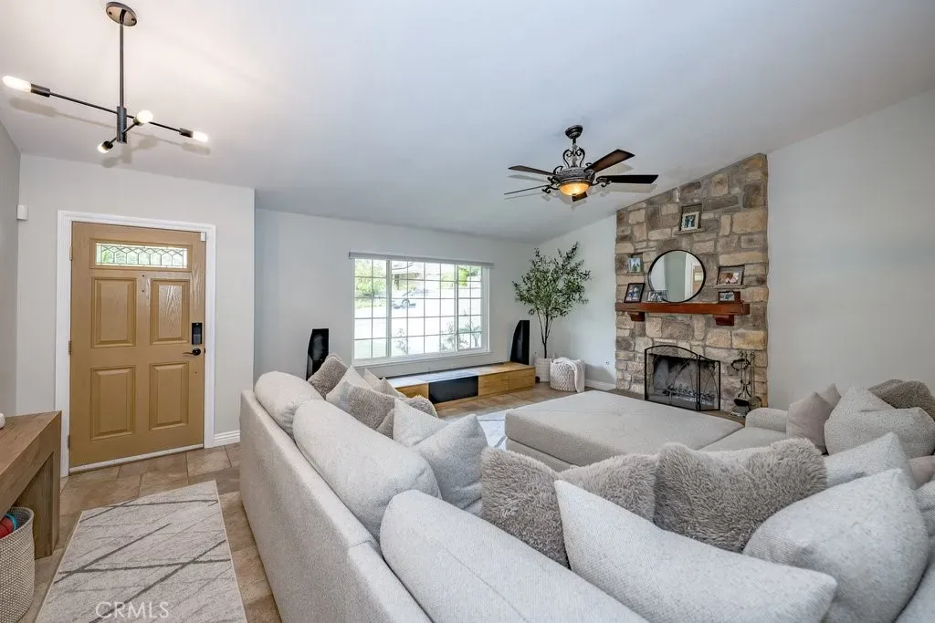 This white picket fenced single story 4 bedroom home is well located within the “Santa Clarita Hills” neighborhood of Canyon Country. This favorable location offers a larger than average sized lot providing outstanding views of Santa Clarita including the beautiful hills and the mountains beyond. This property has an exceptionally long R.V. access area with space for several larger vehicles to park behind a secured gate. This property is in immaculate condition with recent updates and upgrades throughout this home. Come inside and discover all of the extensive remodeling improvements made within the kitchen and bathrooms offering newer cabinetry, counter tops with back splash tiles & newer porcelain tile flooring along with porcelain wood plank tile flooring in bedrooms & newer plumbing fixtures as well as newer lighting fixtures throughout. There are vaulted ceilings with a light and bright feel within all of the rooms plus crown moldings. This home’s floor plan has an open and user friendly layout with ample room to have larger furnishings with plenty of space to host large gatherings with room to spare. Stroll through this home and you will be drawn to the exceptional outdoor living space with a well designed custom built patio having hardscape improvements, a fire pit and an outdoor fireplace, with a large built in BBQ area with room for a pool or hot tub including an open garden space and yard for pets and children to play all while enjoying unobstructed views of Santa Clarita from this incredible backyard! This property also has a paid for solar system and energy efficient dual pane windows throughout this home. This property features a larger driveway area with additional parking space plus a plug in outlet for your EV and displays true pride in ownership with great curb appeal. This home is located within a very short walking distance to the Mitchell elementary community school and is also very close in proximity to several store options for shopping, freeway access and is adjacent to Sand Canyon with close proximity to Robinson’s Ranch Golf course. This home is a true value for all of the improvements along with the upgrades and outdoor hardscape improvements provided within this offering. This is a must see property for any discriminating buyer looking for a turn key home with a more than an exceptional location & value for all of the features & amenities for this incredible homeownership opportunity!