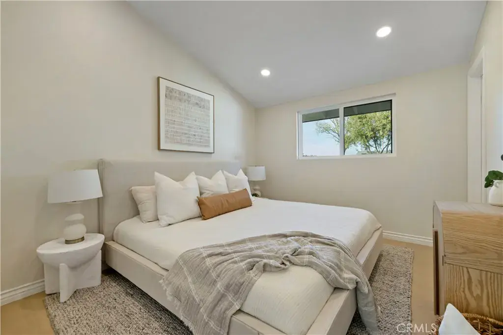 Both bathrooms have been tastefully upgraded, including a beautifully tiled bathroom with white oak cabinetry and modern fixtures that elevate the home’s clean aesthetic. Each bedroom offers comfort and flexibility for family, guests, or a home office.