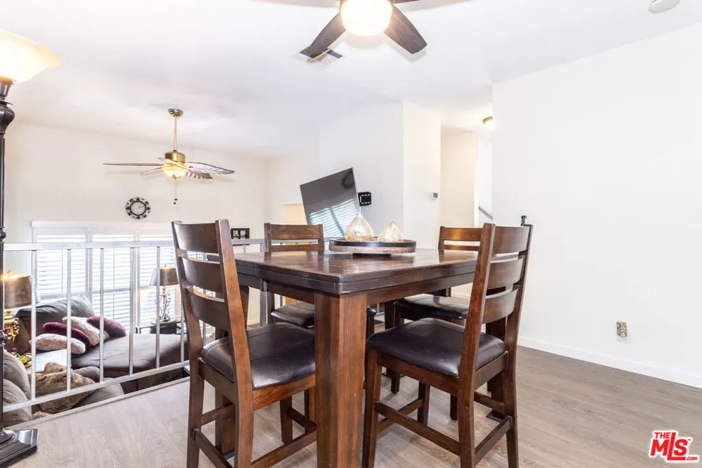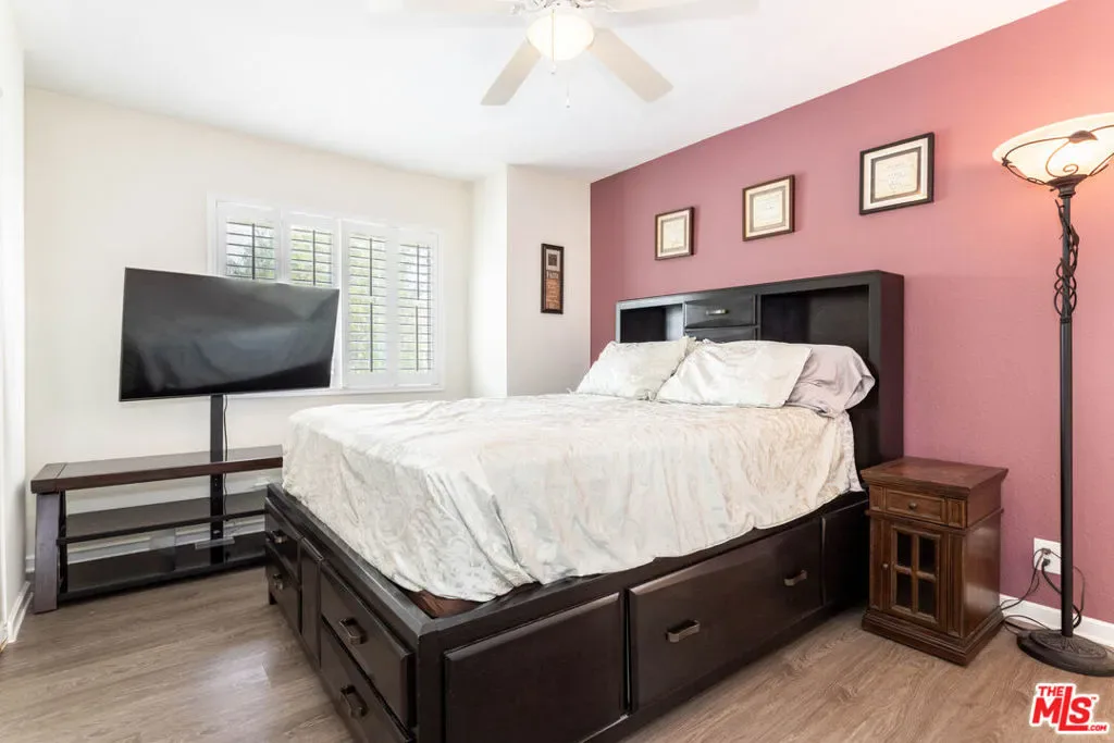 Welcome to the Tres Robles 1 Community of Santa Clarita! Per FNMA Manager site, this association is warrantable and approved for conventional financing! Arguably the best location in the entire complex overlooking the sparkling pool, playground and greenbelt. Upon entry you will immediately appreciate the high ceilings, floor to ceiling fireplace and natural light cascading through the windows. Upgrades include solid surface laminate flooring throughout, dual paned windows with slider and custom plantation shutters. No popcorn ceiling in this unit, smooth textured ceilings only. Kitchen features newer cabinetry, granite counter tops, bay window, tray ceiling with LED recessed lighting and all upgraded Samsung Stainless Steel appliances including dishwasher, microwave, Double Oven Gas Range and French Door Smart refrigerator. There is a main floor bedroom which could be ideal for a guest room. Upstairs offers dual primary en-suites with ample closet space and bathrooms with waterfall faucets. Generous sized landing area could be used as an office/media niche or sitting area. Private front patio is perfect for relaxing, grilling or simply soaking up the greenbelt and pool views. Easy access to biking, trails, the 14 freeway, shopping, dining and more! HOA dues include water and trash.