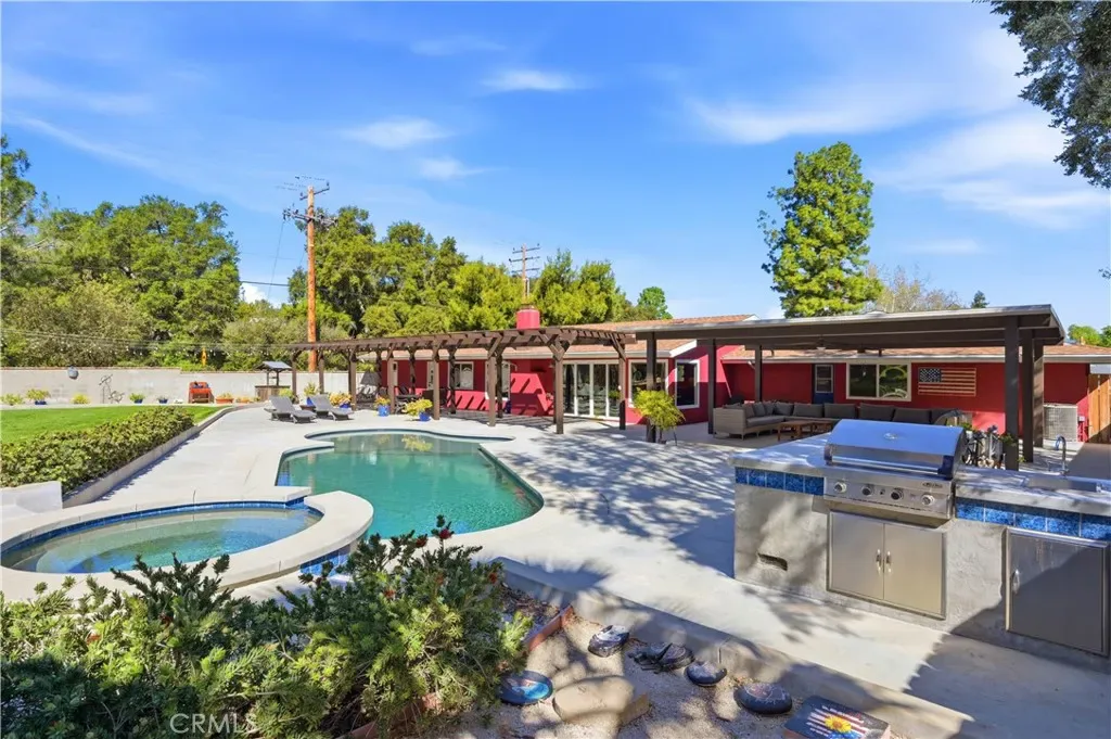 Welcome to your new home. This home shows true pride of ownership. Unpack and enjoy this little piece of heaven. A welcoming front entrance with a ranch feel gives way to your beautiful home the double door entry with rod iron accents open to a lovely entry. off to the left after you have come inside is the spacious Kitchen with lots of Cupboards and counters for all your cooking and baking needs. The large center island is great for a buffet style serving or the 12 ft back counter. A Built in Refrigerator and freezer is an added bonus. Hosting a party couldn’t be easier with all the space. Your spacious living room with a fireplace has lots of natural lighting and a great view of your resort like backyard. Off the kitchen is the laundry room that leads way to the 4th bedroom with its own bathroom and large closet with built in drawers and shelving. On the right of the front door, you will find the large master bedroom with a lovely bathroom and large closet space built-ins there as well. The hall bathroom is shared with the 2nd and 3rd bedrooms and yes, those closets have built-ins as well. Your Back yard has 2 patios; one is fully covered with can lighting and ceiling fans and the other has screen roofing. The pool was redone about 6 years ago and a baja area was added and a lager jacuzzi. If you love outdoor cooking and entertaining the outdoor kitchen with lots of space, a BBQ built in and a refrigerator. 2 – 20ft storage bins are located in front of the extra-large RV parking. The beautiful Oak tree gives you a park like feel. This home is a must see and won’t last long. Call today for your private showing.