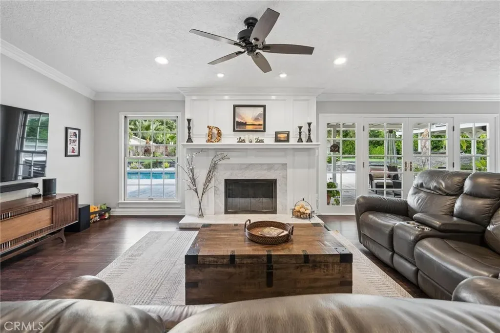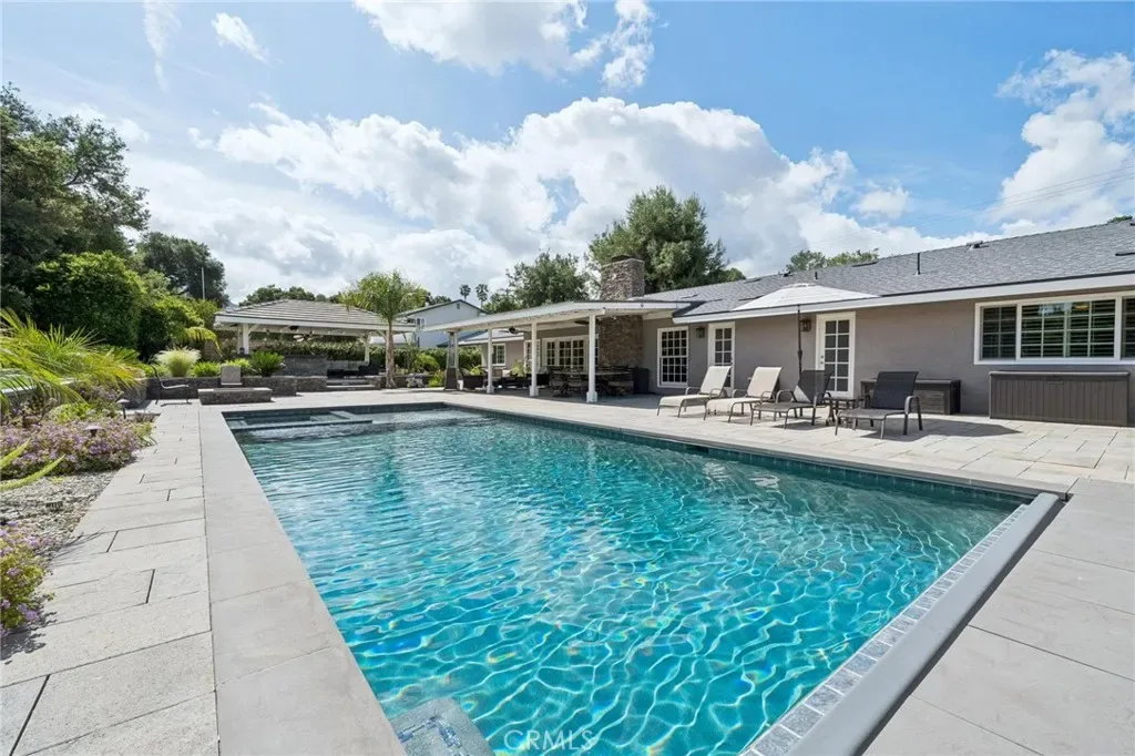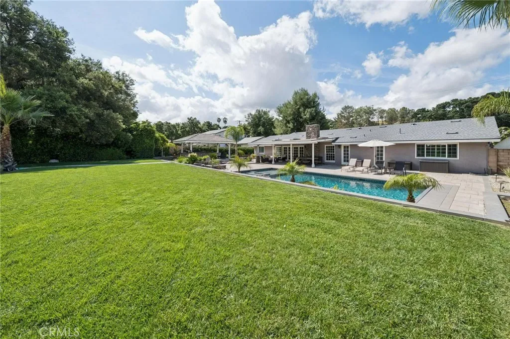 Truly amazing, remodeled Sand Canyon single story pool home on a huge usable lot! Blending the maturity of the beloved “Woodlands” neighborhood with a home that has been recently updated inside AND out, we present this gem of a property. With over two thirds of a usable acre, there are essentially two distinct back yards with the back section offering a lighted tennis/basketball/pickleball court and true RV with private access coming off Clearlake drive. Redone in 2020, the backyard features truly amazing stone paver hardscape, full-sized pool with auto cover, gas fire pit, full length patio cover PLUS a detached gazebo, BBQ and gorgeous stack stone hardscape. Plenty of room to entertain. Inside the kitchen & all 3 full baths have been tastefully redone in current colors and finishes. Structural improvements include newer roof (2023), windows (2017) & Carrier HVAC with ducting and Generac whole house system (2025). Last but definitely not least, the seller converted from septic to sewer (2021). Throughout the home you will feel that it has been consistently updated in a way that emphasizes quality more than cost. Other nice touches include updated lighting, barn doors, crown and base molding and updated flooring. The 5th bedroom has been converted into a huge walk-in closet off the primary bedroom with built-ins. 3-car garage with EV charger too. Featuring the largest yard and home available in this price range without HOA or extra Mello Roos taxes, this is the definition of great value for money. Rarely does a home like this come available!