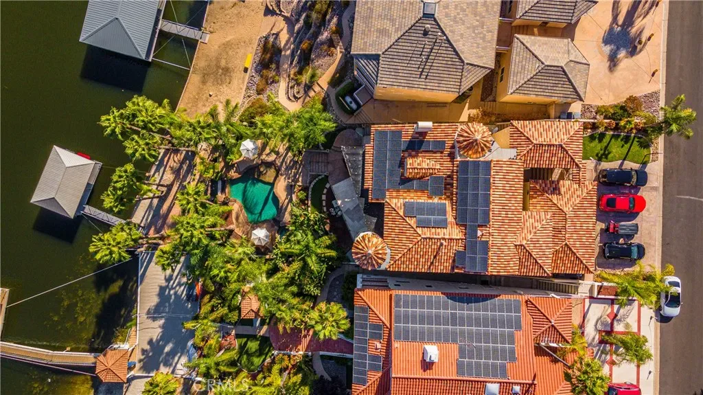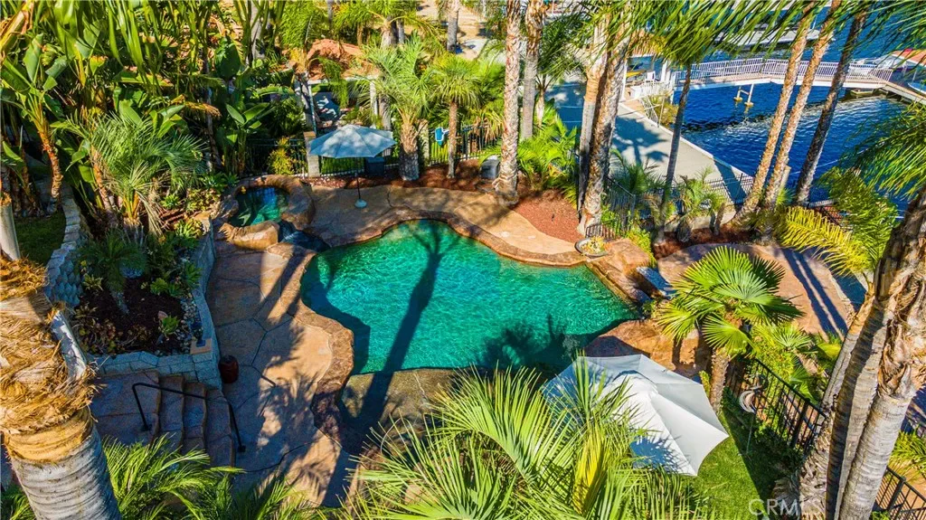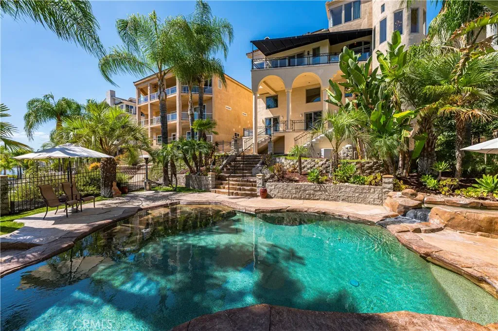 This 2001 “Paul Olsen” designed home embodies the Canyon Lake lifestyle. Located a stones throw from the main lake on Big Bass Cove this home offers a tropical paradise with an infinity edge rock pool and spa framed by lush tropical landscaping. The pool sits steps from the water over looking the fire pit, sandy beach and large “U” dock with hoist and cover. As you enter through the 12′ iron front door the impressive custom finishings and spectacular lake views will “WOW” the most picky buyer. This home offers a large open floor plan, travertine flooring, large kitchen with custom cabinets, stainless steel and panel ready appliances with hidden refrigerator drawers. Sit back and relax while watching your favorite movie in your own custom theater room with 100″ projection screen not to mention a workout room and kids play area that is an addition to the square footage of the home. This home also features a solar system which offsets the majority of the Edison bill. This property will be on top of all your clients wish lists.