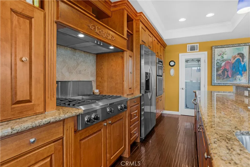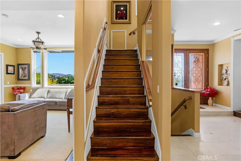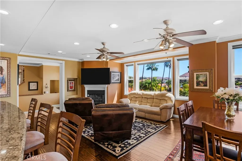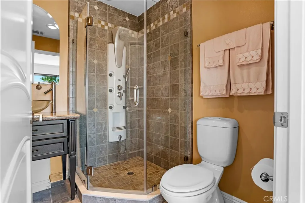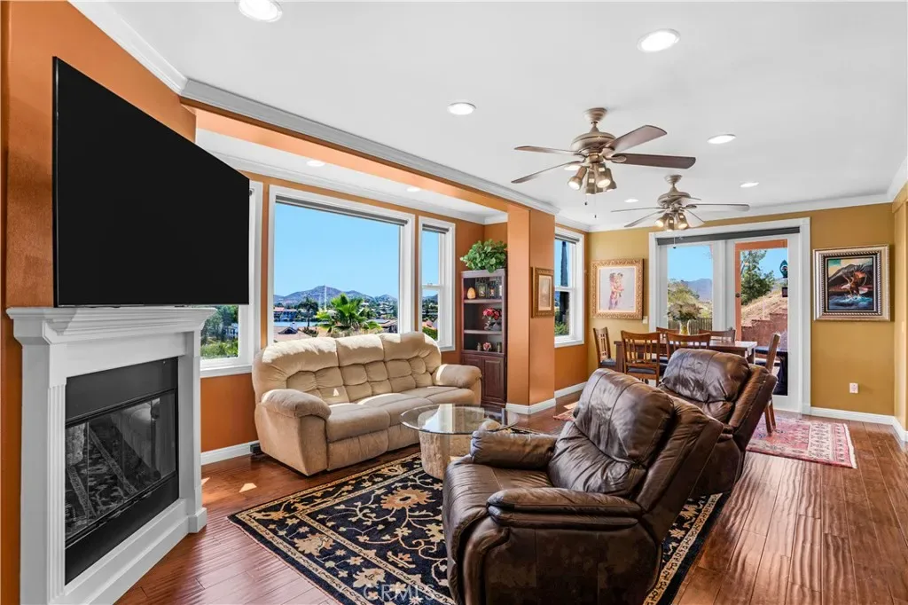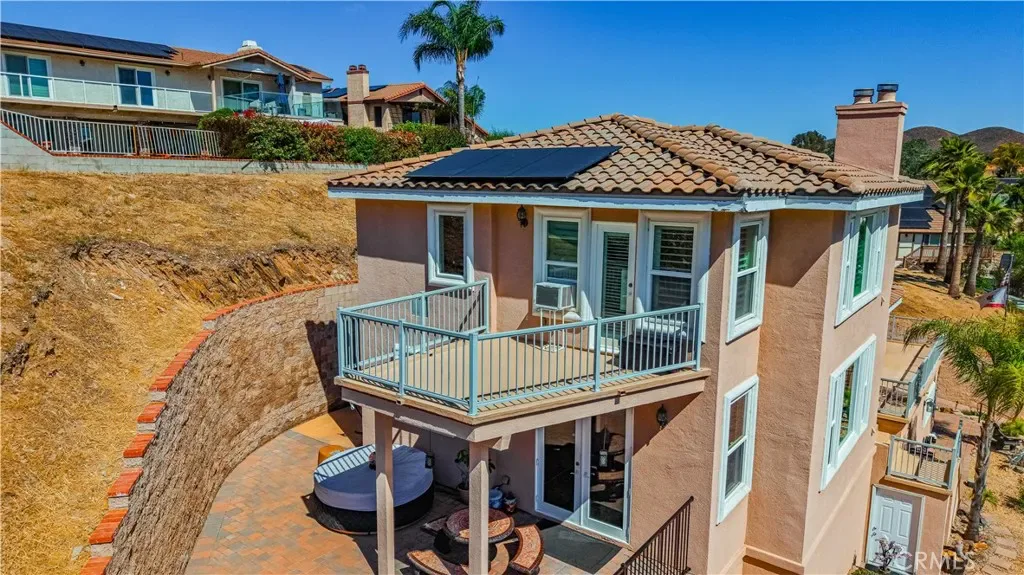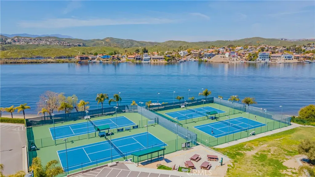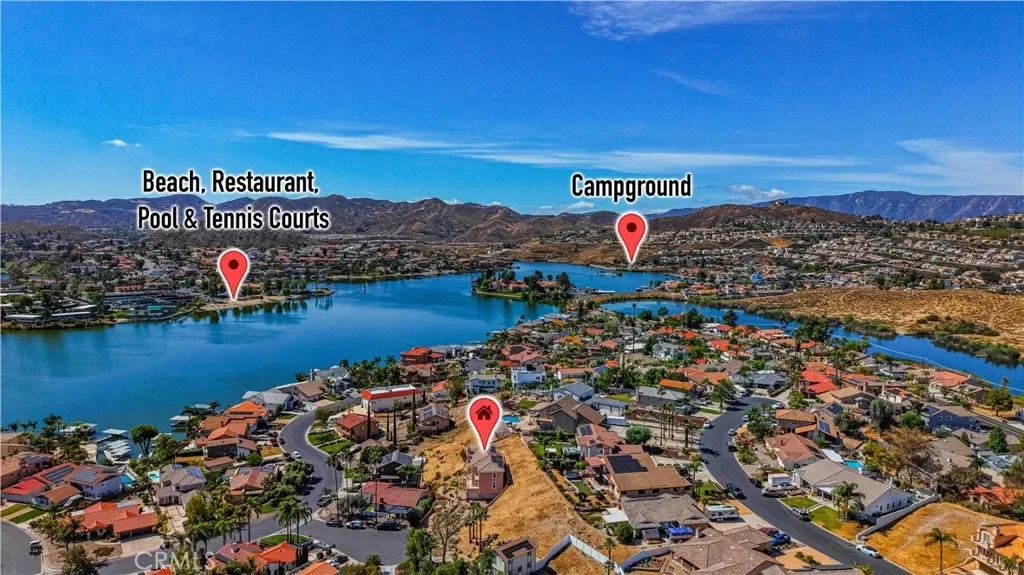 Gorgeous, Beautifully Built 3870 SF custom home with a THEATRE ROOM and LAKE VIEWS from almost every room! Main floor begins with a chef’s KITCHEN, custom cabinetry and a granite island. It boasts a stove with center griddle, a double oven and a walk in pantry. Kitchen opens to a FAMILY ROOM with a cozy gas fireplace and big picture windows that look out to the lake. Walk out the French doors to a stone patio where you can soak in the hot tub or enjoy the panoramic view from the round concrete patio table. On the other wing of the main level is the guest bath, OFFICE with built in desk and shelves, LIVING ROOM and the FIRST PRIMARY bedroom with ensuite bathroom. Head upstairs to the SECOND PRIMARY Bedroom with large ensuite bathroom. A walk-in shower, separate jetted tub and large walk in closet complete this retreat. The bedroom is spacious with a gas fireplace and a Private deck. A loft separates the primary bedroom from the other three bedrooms on this level. Two of the guest bedrooms are ensuite providing comfort and privacy for each person. 2 of the 5 bedrooms have been opened to one another to create a lovely suite with a private deck. The house has been thoughtfully designed to have STUNNING lake views from large pictures windows in the bedrooms and living spaces. Soaring 10′ ceilings, granite countertops, custom paint, wood floors and dramatic crown moulding make Crusader an elegant property. The final amazing space is a PRIVATE THEATRE in the lower level with WET BAR and 10′ SCREEN with projector. The house has a 3 CAR GARAGE and street level BOAT PARKING. At the end of a cul-de-sac, the driveway accommodates the owner’s low profile collector car. A whole house water softener system also provides water to the garage area for washing cars without the hard water! Move in just in time to enjoy the 4th of July Fireworks from one of your 3 DECKS! Enjoy this GRAND HOME while being cost efficient-PAID OFF SOLAR and inverter in stalled in 2023, dual AC units, whole house fan and low maintenance landscape. Canyon Lake is a gated golf and lake community with parks, country club, events, equestrian center, ski lakes, baseball field, dog parks, pickleball, basketball courts, tennis courts, lakeside campground and much more. The Lighthouse Restaurant offers indoor and outdoor dining and event space right beside an Olympic-sized pool, sandy beaches and play area. Near the community you can hike, bike, shop and enjoy the best of the Southern CA lifestyle!
