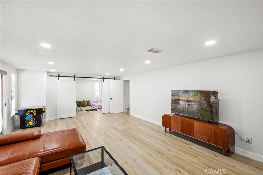 You must see this Beautifully remodeled, high end luxury home located on the 4th green and the 5th tee box of the prestigious PGA-rated golf course. This is a golfers DREAM home. From both the upper and lower viewing decks, enjoy peaceful outdoor living while watching golfers finish on the green and then tee off on the next hole one of the best views on the entire course. Canyon Lake is one of the only private, gated golf-course and water-skiing lake communities in the state of California. This home has been completely remodeled and upgraded from top to bottom. Every window and sliding glass door has been replaced and they have custom slatted shades. The Kitchen features custom cabinets, all new stainless-steel appliances, quartz counter tops and a prep island it also has an extra-large stainless sink. The Built-in refrigerator/freezer is an impressive 48 inches wide. Luxury vinyl plank flooring runs throughout the home, no carpet for easy care and a clean modern look. A custom accent wall greets you at the entry, featuring a SECRET HIDDEN door leading to the oversized main bedroom. The main bathroom offers double sinks and custom cabinets with touch light mirror, also a very large walk-in shower and an oversized soaking tub perfect for relaxing. This home also includes another exceptional feature: A full sized one-bedroom APARTMENT (approx.700sq.ft.) complete with a full bathroom, its own washer and dryer, and a spacious walk-in closet. Perfect for rental or mother-in law space. French doors open to a private covered patio that also faces the golf course, giving the space its own secluded entrance and beautiful views. The amenities in Canyon Lake are endless- tennis, pickleball, pool, water skiing, boat docks, playgrounds, picnic areas, and 10 sandy beaches around the lake, The community also provides 24-hour gated security, ensuring peace of mind in this truly one-of-a kind lifestyle environment.