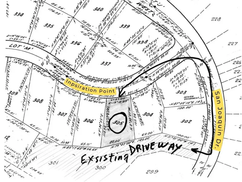 Builable lot with spectacular view of the hills and mountains. Prime location with a great price! This lot is lcoated with the back side to Inpsiration Point (where address is) and the front side is on San Joaquin Dr West. Access this lot around the corner on San Joaquin Dr West, just follow the red arrow up the wide driveway. This driveway is shared by five other houses. The lot is surrounded by water front homes with miliion dollar price tags. It’s a quiet street with all utilites available for your build. Lot is situated between two houses that would have a similar size and structure. Build your own custom home here with no mello roos and a low tax rate. Enjoy the Canyon Lake resort life in a community that beckons famlies of all kinds to relax and lie like you’re on vacation every day. This city has it all! From a state of the art club house and pool, to beaches, parks, equestrian center, baseball diamonds, volleyball/ pickleball/ tennis courts, dog park, and senior center. Enjoy the year-round community events such as the annual Easter Egg festival, Fiesta days on Memorial weekend, the 4rth of July parade, Halloween festival, Veteran’s day celebrations, and the Tree Lighting ceremony at the lodge. Come be a part of one of the valleys true hidden gems! Lot size is approx. 57 feet on Inspiration, 105 ft on east side, 115 ft on west side, and 82 ft on top of hill by driveway access road.