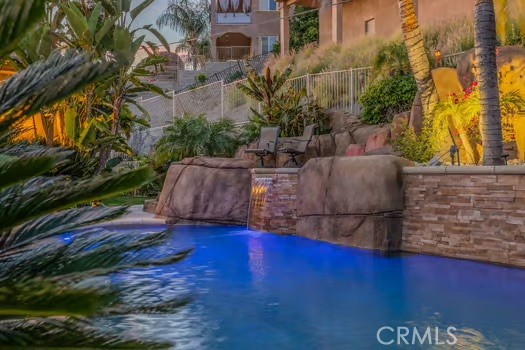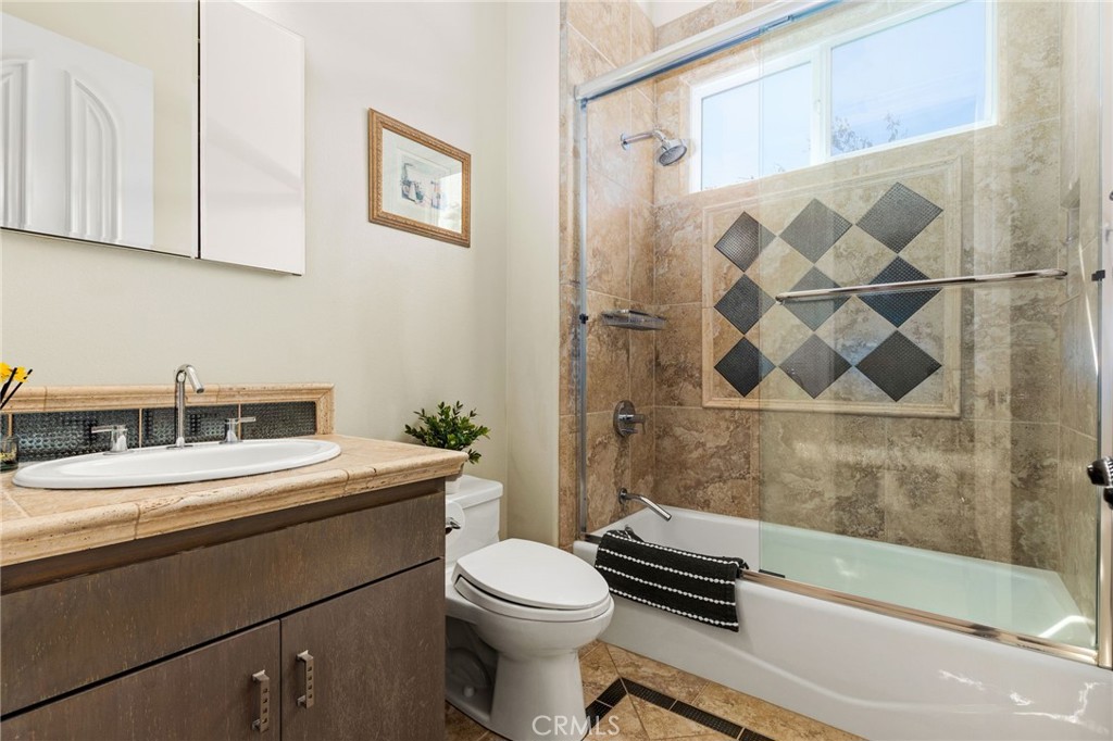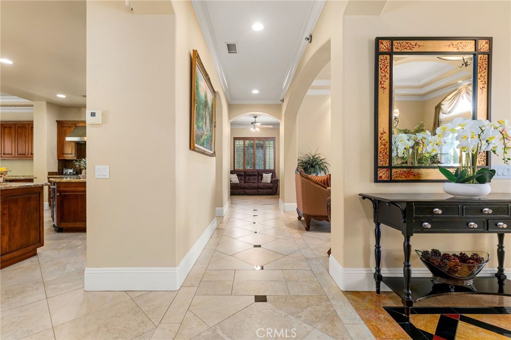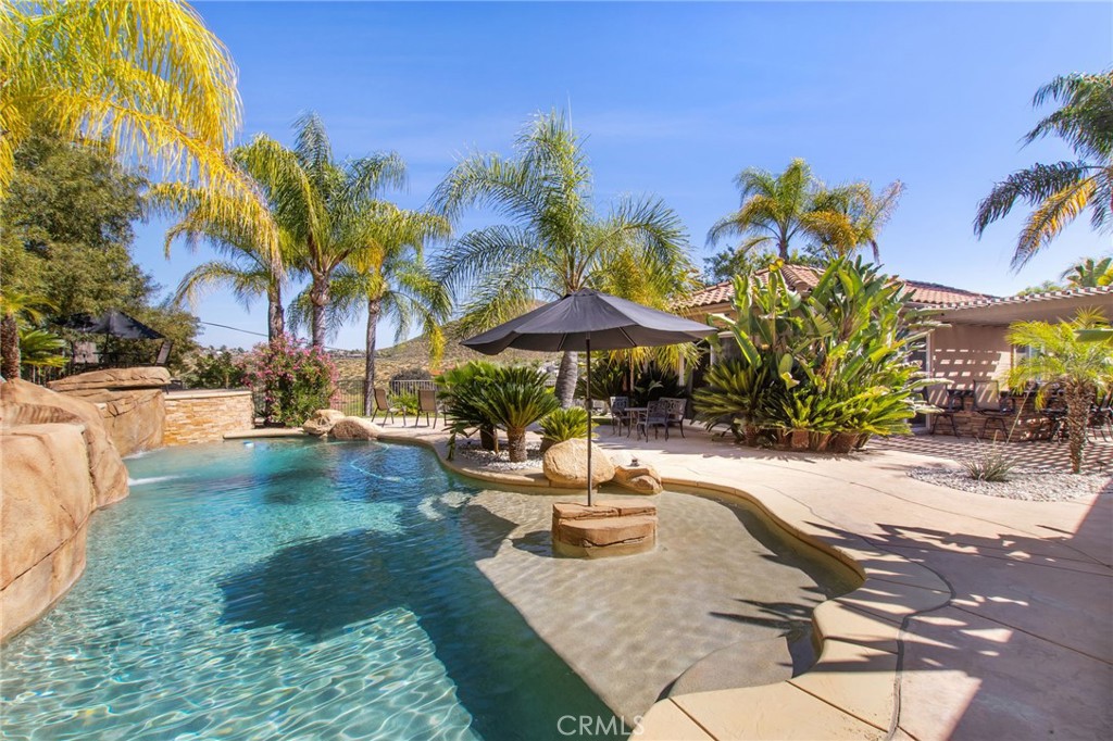 Welcome to 22928 San Joaquin Drive East in the gated community of Canyon Lake. Situated on an expansive half acre lot, this impressive single story home offers approximately 4,700 square feet with 4 bedrooms and 6 bathrooms. The home features a grand iron and glass entry door that opens to spacious living areas with travertine flooring, custom inlays, and high ceilings throughout. The kitchen is designed for both everyday living and entertaining with granite countertops, stainless steel appliances including Thermador cooking equipment, a built in refrigerator, and extensive cabinetry. The backyard offers a private pool and generous outdoor space ideal for relaxing or hosting gatherings. A detached casita provides flexible space for guests, extended family, or a home office. Car enthusiasts will appreciate the rare 8 car garage, a unique feature within Canyon Lake. The property also includes paid solar and a large lot that provides privacy and room to enjoy outdoor living. Canyon Lake residents enjoy 24 hour gated security along with access to the private lake for boating and fishing, a golf course, clubhouse, parks, beaches, tennis, pickleball, and a variety of community events.