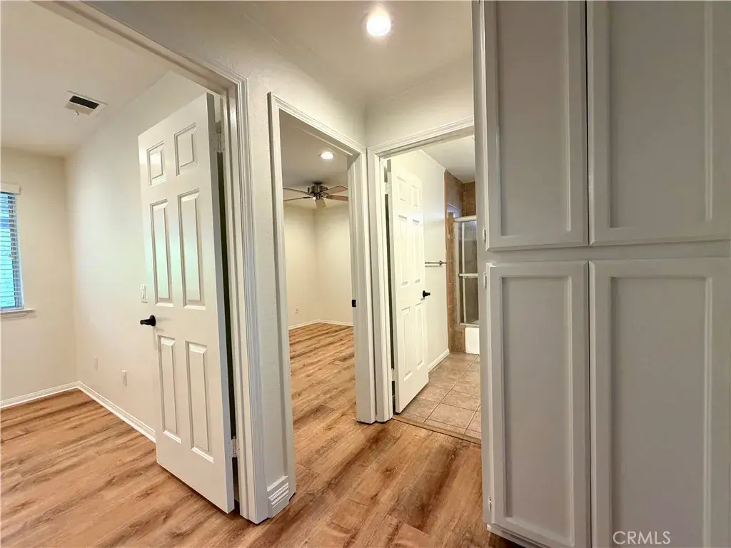 Welcome to the sought-after community of Canyon Lake, where resort-style living meets everyday comfort. This unique home offers 3 bedrooms and 2 bathrooms in the main living area, plus a separate 4th bedroom with a full bathroom and private entrance—perfect for guests, extended family, or a private workspace. Residents enjoy access to incredible community amenities including the iconic lake, golf course, lodge with restaurant, community pool, tennis and pickleball courts, 24/7 gated security, and so much more. As you arrive, you’re greeted by low-maintenance landscaping and a welcoming staircase leading to the main entry. Inside, the spacious living room features luxury-style flooring, recessed lighting, and built-in shelving ideal for books, décor, or additional storage. A convenient coat closet is located near the front door. The kitchen is both functional and stylish, showcasing a cozy nook with an electric stovetop, pendant lighting, sleek countertops, wood-finish cabinetry, and recessed lighting throughout. Down the hallway, the primary suite serves as a relaxing retreat with recessed lighting, a large closet, and an updated en-suite bathroom featuring dual sinks, white cabinetry, dual vanities, and a shower/tub combination with upscale finishes. Two additional bedrooms are generously sized and feature matching elegant flooring and recessed lighting. The hallway bathroom includes tile flooring and a shower/tub combination. From the kitchen, access the lush, green backyard, offering a peaceful outdoor setting and access to the lower level. Downstairs, you’ll find the garage and a bonus living area complete with a full bathroom, spacious bedroom, ample closet space, and its own private front entrance which is a standout feature that adds flexibility and privacy. Located in proximity to schools, shopping, dining, freeway access, and all that Canyon Lake has to offer. Schedule your private showing today this home won’t last long!