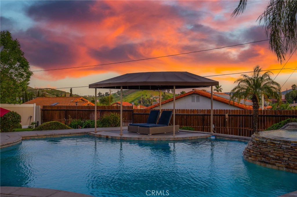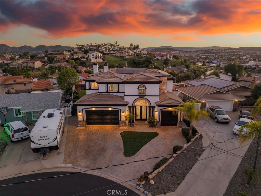 Located in the heart of Southern California’s private waterfront community of Canyon Lake, this stunning Tuscan-inspired residence offers the perfect blend of luxury, comfort, and resort-style living. Built in 2005 and extensively remodeled in 2021, this impressive 5-bedroom, 4-bath home sits on a quarter-acre cul-de-sac lot with space, privacy, and beautiful curb appeal. Step through the custom iron entry doors into a grand interior featuring soaring two-story ceilings, a wide entry hallway, and sightlines leading directly into the main living area. The living room showcases coffered ceilings and flows seamlessly into a spacious chef’s kitchen designed for entertaining. The kitchen features double ovens, built-in refrigerator, large center island, bar seating, and abundant cabinetry and pantry space. Just off the kitchen is the formal dining room, perfect for hosting dinners with friends and family. Throughout the home you’ll find high-end finishes and thoughtful upgrades, including travertine and bamboo flooring, granite countertops, custom stone showers, elegant wainscoting, surround sound, a private theater room, central vacuum system, custom interior paint, and epoxy garage floors. 42 owned solar panels on NEM 2.0, along with a Vivint security camera system. Upstairs offers three spacious secondary bedrooms, including two connected by a Jack-and-Jill bath and a third with its own en-suite bath and deck access. The primary suite serves as a private retreat, featuring a cozy fireplace and French doors opening to a deck with sweeping views of the surrounding community and hillsides. The primary bathroom offers a soaking tub, walk-in shower, dual sinks, and generous closet space. Step outside and the property becomes a private backyard resort. The oversized pool features a Baja shelf, swim-up bar stools, and raised spa with a new heater additionally approximately 1,500 square feet of outdoor living space, including a beautiful California Room and large grass area. The home is completed by an oversized garage with insulated doors providing ample space for all your toys. Canyon Lake offers a 1.1% tax base with no Mello Roos, 384 acre waterski/fishing lake, 16 parks most with beaches and playset, basketball courts, baseball fields, tennis & pickle ball courts, equestrian center, 18 hole golf course, pools, dog park, golf cart friendly streets, slalom course, ski jump, restaurants, community events and so much more!!! Live life on vacation in Canyon Lake!