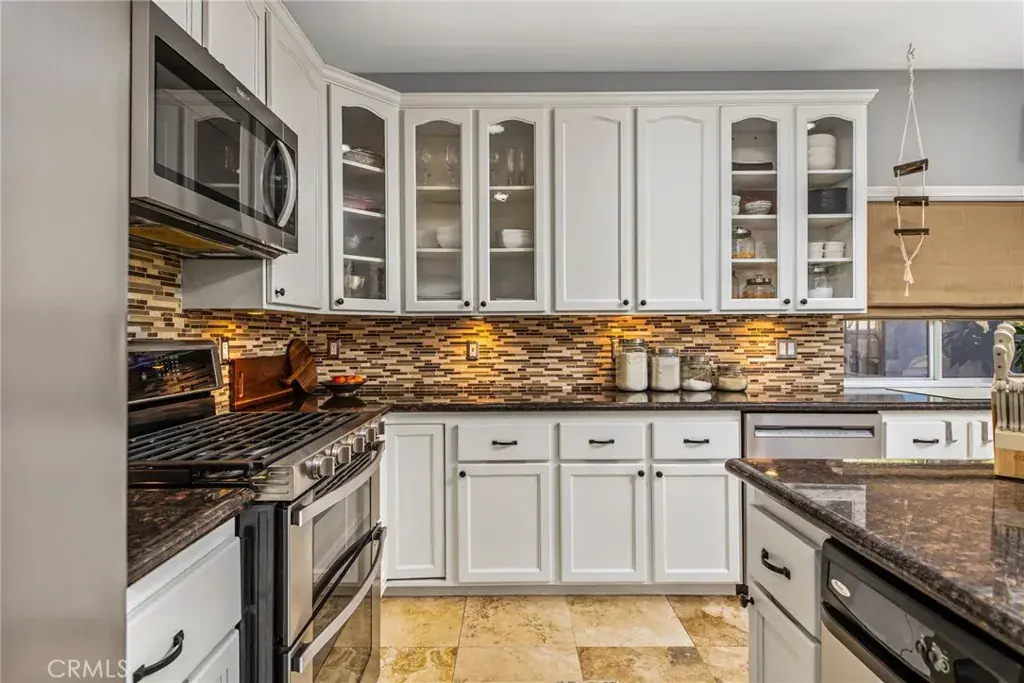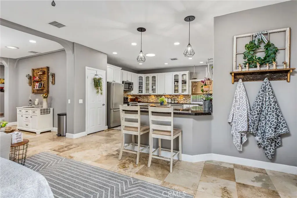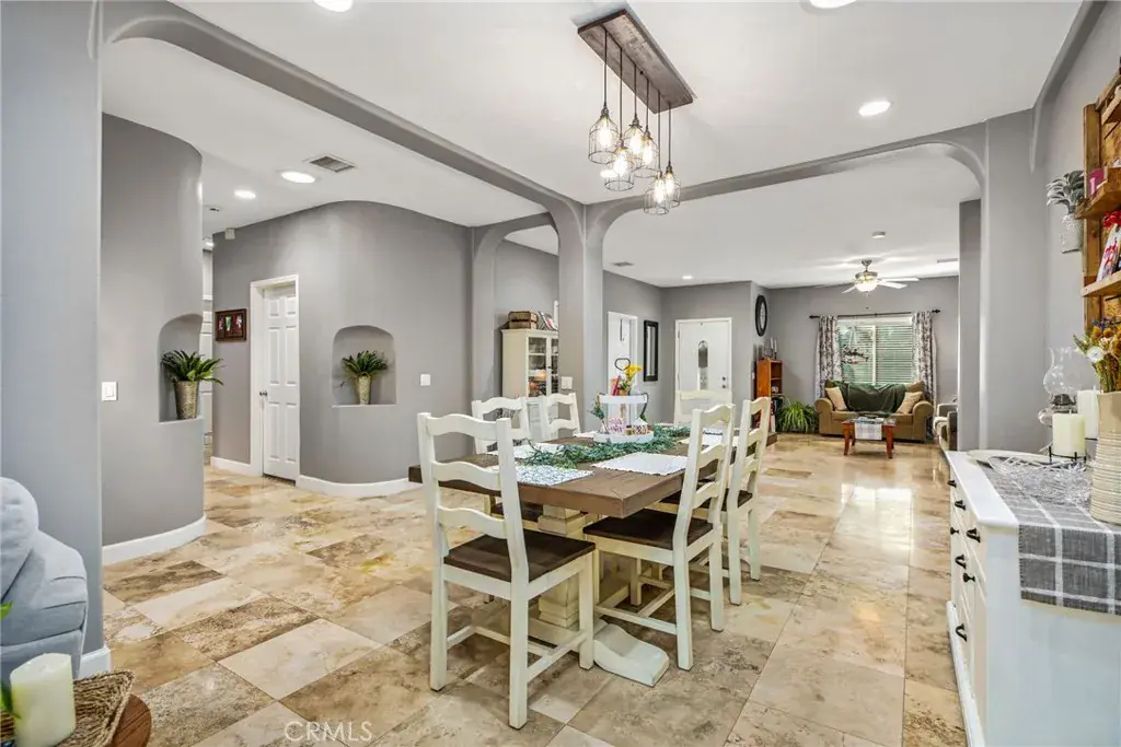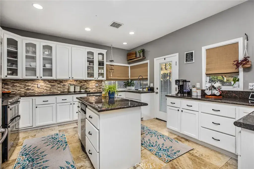 Welcome to this beautifully appointed single-story pool home in the highly desirable community of Canyon Lake. Offering 4 bedrooms, 3 bathrooms, and approximately 2,400 square feet of thoughtfully designed living space, this 2003-built residence blends comfort, style, and functionality. From the moment you arrive, the home’s impressive curb appeal stands out, featuring elegant stone accents and a meticulously maintained exterior. Inside, travertine flooring flows throughout the main living areas, complemented by soaring ceilings, recessed lighting, and updated fixtures that create a bright and inviting atmosphere. The expansive open-concept layout is perfect for both everyday living and entertaining. At the heart of the home, the spacious kitchen showcases a large center island, propane cooktop, stone backsplash, under-cabinet lighting, and stainless steel appliances—all seamlessly connected to the main living spaces. Designed with privacy in mind, the floor plan offers a well-balanced layout. Two guest bedrooms share a beautifully remodeled Jack-and-Jill bathroom, while an additional bedroom and fully updated hallway bath are situated on the opposite side of the home—ideal for guests or multigenerational living. A dedicated indoor laundry room adds everyday convenience. The primary suite serves as a private retreat, complete with direct backyard access and a stunning remodeled en-suite bathroom featuring dual vanities, a soaking tub, a walk-in shower, and a dual-sided propane fireplace for a touch of luxury. Step outside to your own backyard oasis, where a newly finished PebbleTec pool and multiple patio areas provide the perfect setting for relaxing or entertaining year-round. Additional highlights include PAID-OFF SOLAR with monthly credits, two newer HVAC systems, and the ease of single-level living throughout. Located within the waterfront, gated Canyon Lake community, residents enjoy exceptional amenities including a 384-acre waterski and fishing lake, 16 parks with beaches and playgrounds, sports courts, an equestrian center, an 18-hole golf course, community pools, a dog park, golf cart-friendly streets, and a variety of dining and year-round events—all with a low tax rate and no Mello-Roos. Experience resort-style living every day—welcome home to Canyon Lake.