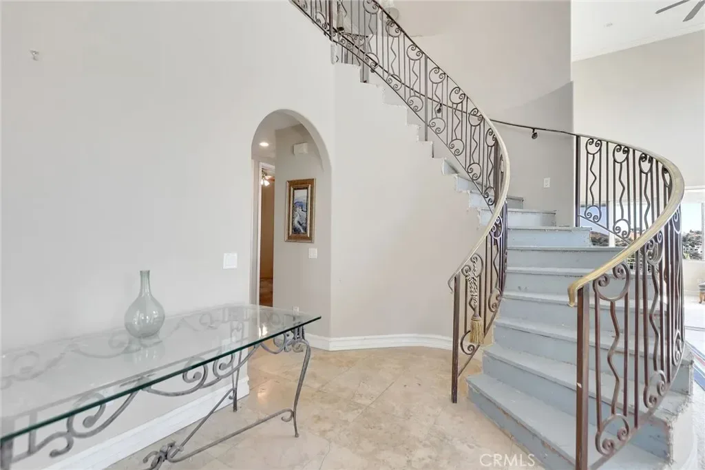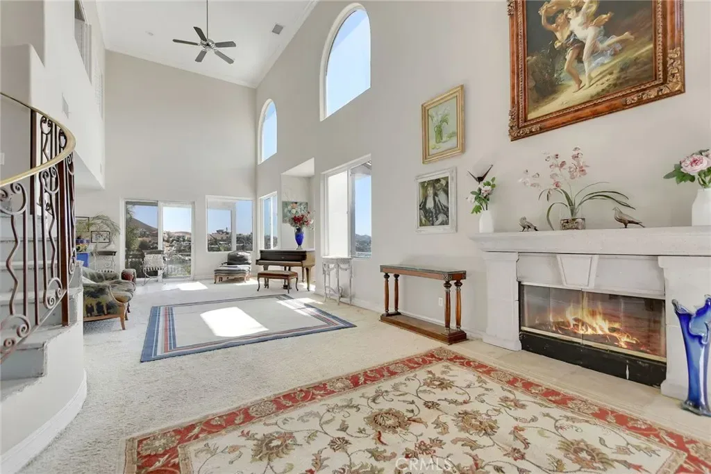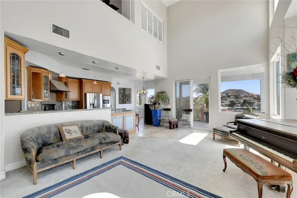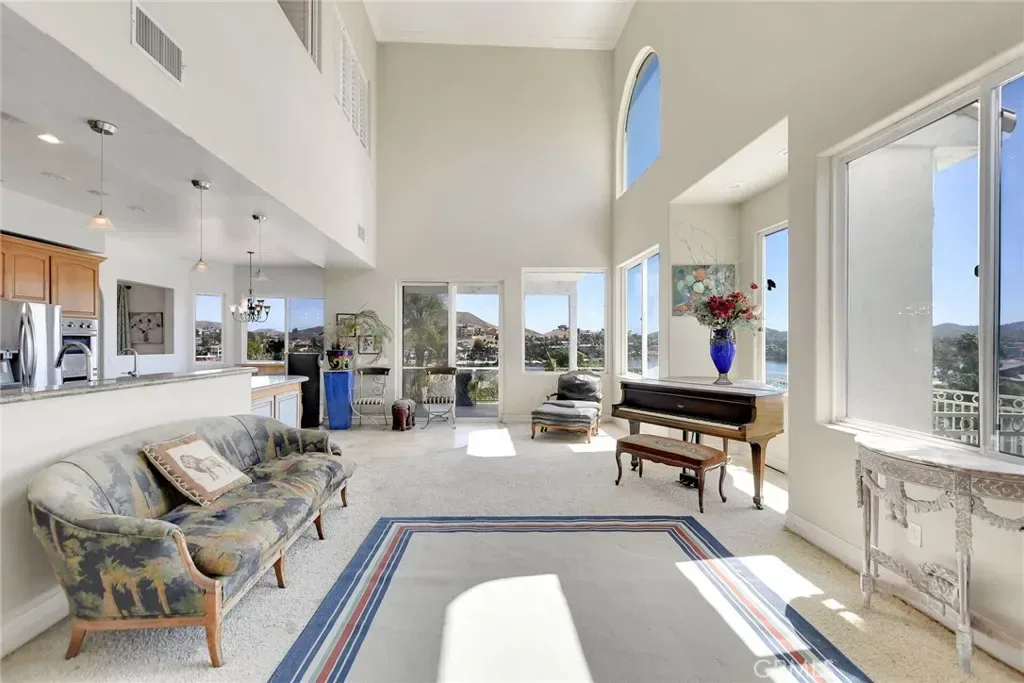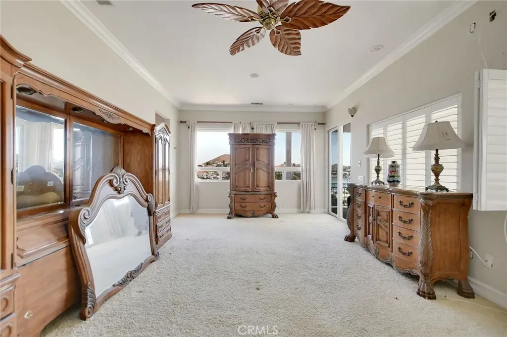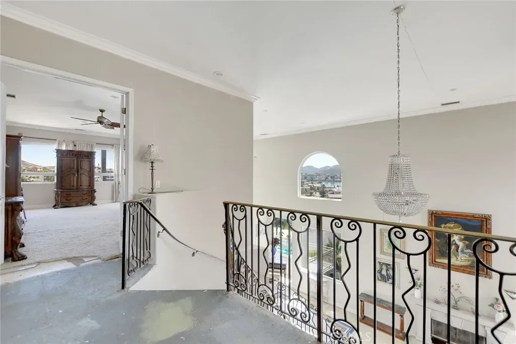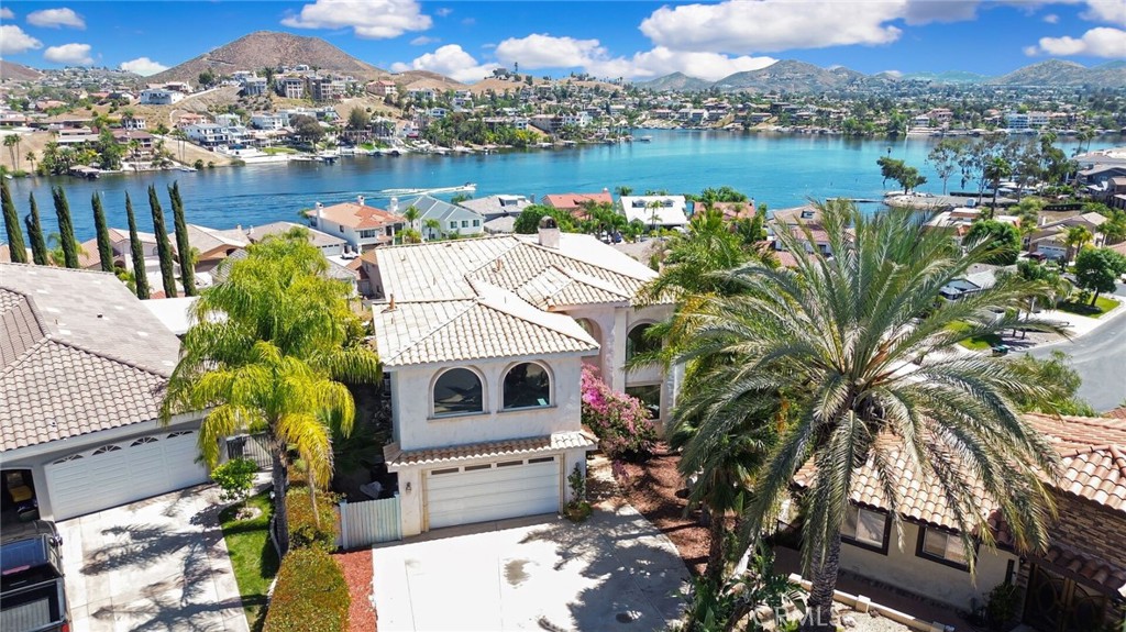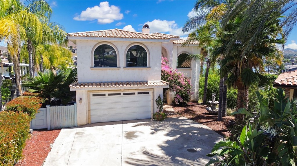 Grab a brush and save a bundle. This newer built home, with spectacular waterfront views, is located on a quiet cul-de-sac near the North Gate. It needs a little TLC but is truly a DIAMOND in the rough. Features of this property include: panoramic lake views (from the living room, kitchen, dining room, primary bedroom, bathroom, balconies), great curb appeal, a tile roof, mature landscaping, an open and airy floor plan, a living room with a fireplace, a formal dining room, an upstairs family room, a huge kitchen with custom cabinets & granite counters & stainless steel appliances & a walk in pantry, a primary bedroom with its own fireplace & 4 fixture bathroom & walk in closet, a guest bedroom and full service bathroom downstairs, an indoor laundry room with a laundry chute from upstairs, 2 balconies overlooking a backyard with garden rich soil. There is a 2 car garage with pedestrian access to the home. Other features include: high ceilings, crown molding, recessed lighting, central air conditioning & heating, ceiling fans, and oodles of storage.
