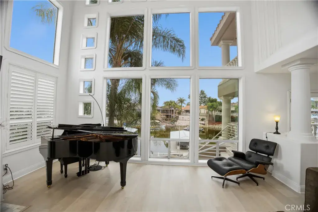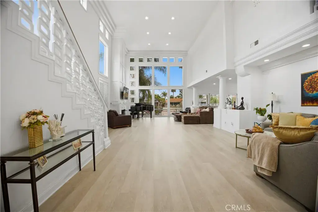 Behind the gates of Canyon Lake, where private beaches and sunset cruises define everyday life, sits a lakefront residence designed to capture light, water, and luxury in perfect harmony. “Casa Molte Finestre,” lives up to its name, “House of Many Windows,” framing shimmering lake views, while soaring ceilings and architectural scale create a sense of openness rarely found in waterfront homes. Since the current owners purchased the home, significant upgrades have been completed, further enhancing both comfort and style. These improvements include custom shutters, a beautifully updated courtyard, a redesigned backyard featuring a spa, new designer garage doors, a dedicated EV charging station, and a newly installed HVAC system. The great room’s dramatic two-story fireplace anchors the space, flowing effortlessly into a refined chef’s kitchen adorned with quartz surfaces, black stainless-steel appliances, a breakfast bar, pantry, and generous cabinetry with abundant storage — ideal for both grand entertaining and elevated everyday living. Upstairs, the primary suite becomes your private sanctuary, featuring vaulted ceilings, a fireplace that creates warmth and intimacy, and a private balcony overlooking the lake. The spa-inspired bath evokes a luxury retreat, complete with a freestanding soaking tub, walk-in shower, dual vanities, and expansive dual walk-in closets designed with boutique-level elegance. Outdoor living is equally impressive. Lakeview terraces invite sunset dinners and morning coffee, while a newly added above-ground spa enhances the resort atmosphere. Your private covered dock and boat lift place boating just steps from your door, offering seamless access to Canyon Lake’s sparkling waters. Upon arrival, a redesigned private courtyard sets an elegant tone, framed by soaring palm trees and leading to an attached three-car garage featuring new designer garage doors and a dedicated EV charging station — seamlessly integrating modern convenience with elevated curb appeal. Beyond the home, Canyon Lake offers a true resort lifestyle, including private beaches, a championship golf course, restaurants, parks and playgrounds, tennis, pickleball, and basketball courts, equestrian facilities, sports parks, and a private campground. This is not simply a lakefront home — it is a distinguished waterfront estate and a statement of luxury living within one of Southern California’s most coveted gated communities.