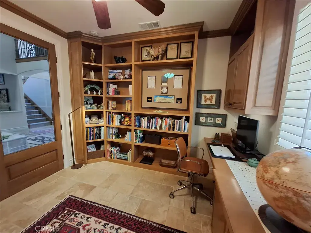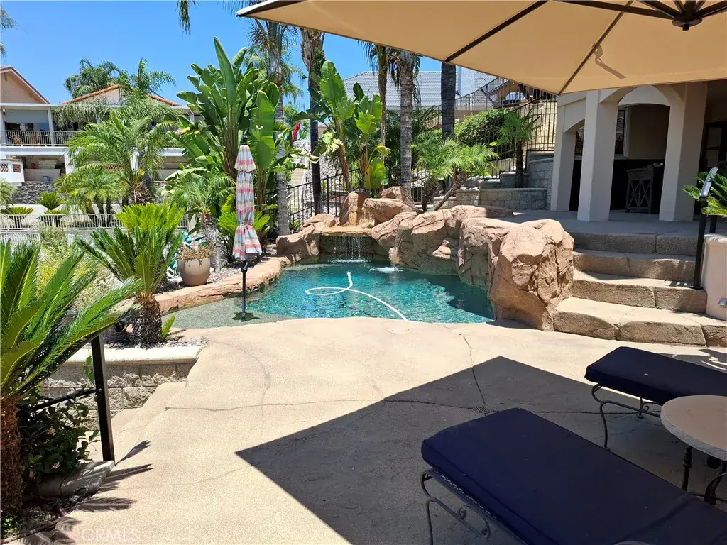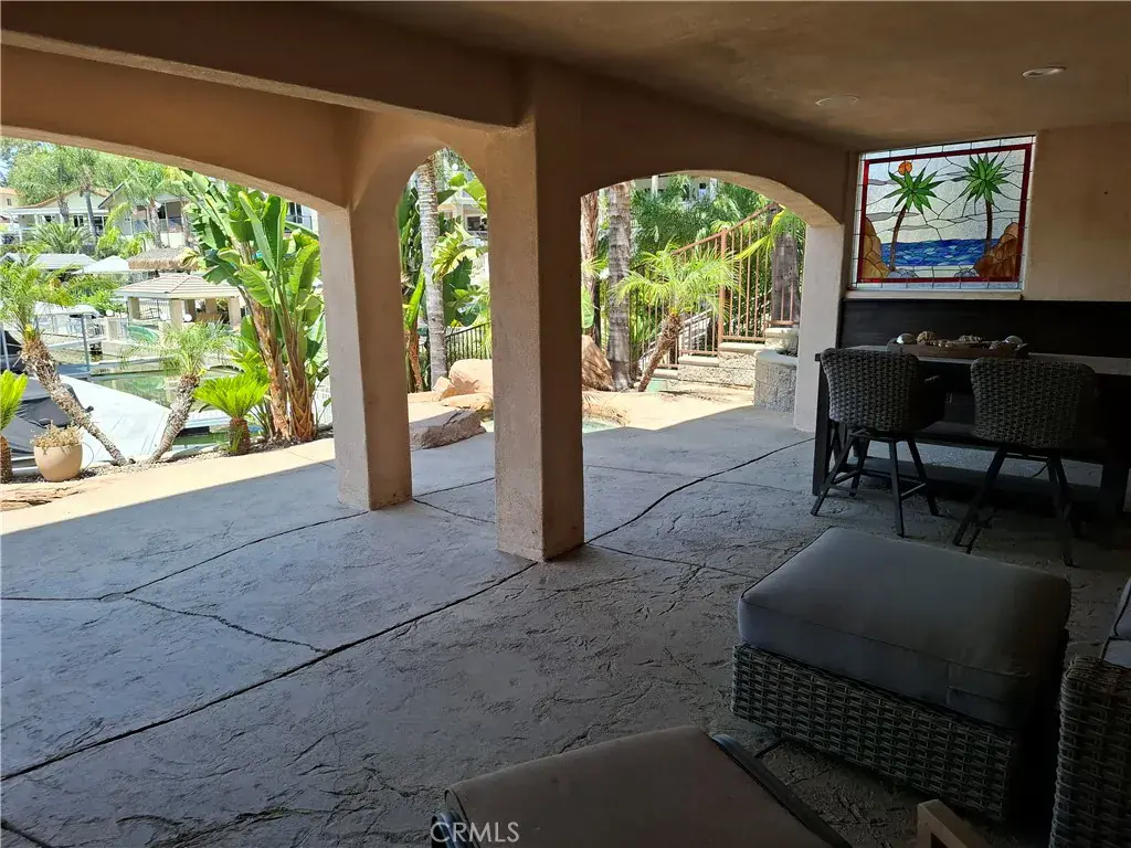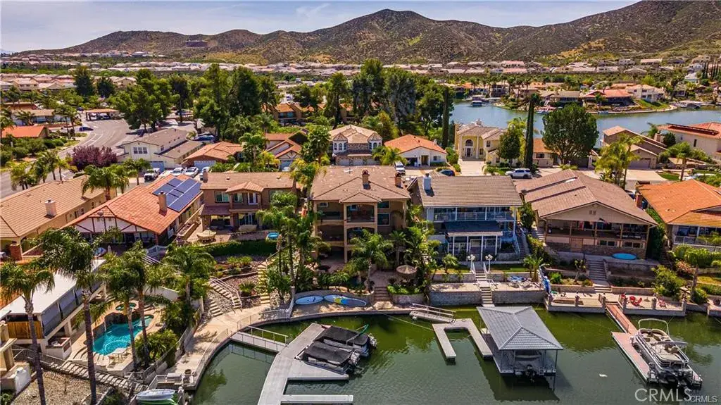 Get ready to be swept away by this breathtaking Waterfront and Resort Style Tropical Pool, Mediterranean Modern masterpiece in the exclusive gated golf and lake community of Canyon Lake! This 2-story, 3 level, 3,689 sq.ft. luxury haven is a dream come true. Step through grand double doors into a serene foyer with travertine flooring, where elegance greets you at every turn. This home is packed with wow-factor: 4 bedrooms, 3 bathrooms, an office/library with double glass French doors, custom cabinets with a rolling library ladder, a cozy sitting/loft area, and a massive bonus room that could easily be converted back to the 4th bedroom. Soaring cathedral-vaulted ceilings, a striking custom rod-iron staircase, and vibrant stained glass windows steal the show. Crown molding, plantation shutters, central vacuum, whole house water filtration system and two fireplaces elevate the vibe, while the gourmet kitchen is a chef’s paradise—granite countertops, stainless steel appliances, massive double refrigerator, oven, 6-burner with grill stove, pot filler, dishwasher, and a large island with a copper sink. Custom cabinetry ties it all together. The master suite is pure indulgence: a large deck with mesmerizing water views, a dual shower, jacuzzi tub, and a sprawling custom closet. Outside, dive into the pebble tec pool and spa with a waterfalls a hidden bench seat under the falls and beach entry, or kick back on the expansive patio in a tropical oasis with a sandy beach area. Lush, professionally landscaped grounds burst with palm trees, bird of paradise, and vibrant flowering plants. Your private boat dock with ramp makes lake life a breeze. A 3-car split garage with epoxy flooring includes a bonus gym or storage space. Two sprawling balconies invite you to soak in stunning water and sunset views. Canyon Lake’s amenities are endless: water skiing, wakeboarding, kayaking, paddleboarding, cruising, fishing, golf, pickleball, tennis, basketball, baseball, an equestrian center, biking, a bike park, dog park, golf carting, multiple community parks, a senior center, restaurant, lodge, and recreation hall, year round community events. Plus, you’re minutes from shopping, schools, and freeways. This isn’t just a home—it’s a lifestyle! Seize this rare opportunity for luxury and adventure in Canyon Lake.