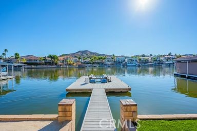 Waterfront “Paradise on East Bay Channel” in Canyon Lake. Enjoy this stunning waterfront location and views!!! Perfectly situated on a prime lot with 70 ft of frontage. You will experience breathtaking views of the mountains, boating, and wild life. Newly remodeled kitchen boasts granite counter tops, new cook top, dishwasher, newer wine fridge and a walk in pantry. Step thru the double door entry and take in the panoramic water views. The spacious great room features vaulted ceilings, crown molding, and tile thru out. A cozy wood burning fireplace in the family room with lots of natural sunlight coming thru the windows. Step outside to an expansive 800 sq ft deck with glass railing, seamlessly blending indoor and outdoor living. New ceiling fans on deck and in primary bedroom. The primary bedroom features shutters letting natural lite filter in along with a beautifully tiled walk in shower. A stylish vanity provides ample space and storage for daily use. This home is designed for both relaxation and entertainment featuring a private U-Dock with lift, allowing you to cruise the lake at a moments notice. Sea wall and terraced yard. The low maintenance yard ensures you have more time to enjoy the waterfront lifestyle. Additional upgrades include a new HVAC system, Professional Landscaping with Palm trees, and fresh paint. Whether you’re hosting guests on your deck, enjoying lake views from your large windows, or out on the boat, this home delivers the ultimate lake experience. Flat driveway to park your boat or toys. Close to pickle ball courts, private lake for skiing and 18 hole SGA golf course.