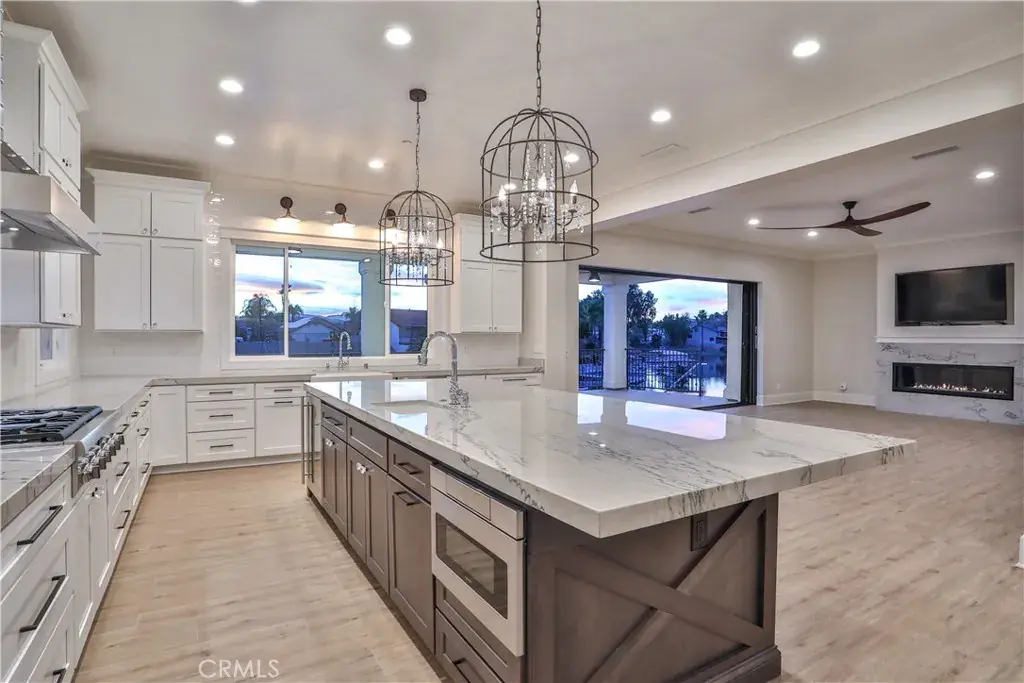 Welcome to lakefront living at its finest in beautiful Canyon Lake. This stunning waterfront home offers the perfect blend of luxury, comfort, and everyday livability — and with the home barely lived in and the pool never swam in, it truly feels like a brand new. From the moment you walk through the wrought iron and glass front door, you’ll notice the thoughtful details — designer lighting and fans, a striking wrought iron and wood staircase, and a warm gas fireplace that makes the main living space feel inviting and cozy. The large family and dining areas are perfect for gathering, whether it’s a quiet night at home or a full house for the holidays. At the heart of the home is a kitchen that was made to be enjoyed. Outfitted with premium Thermador appliances — including a double oven, 6-burner gas cooktop, built-in refrigerator, microwave, and wine fridge — it’s both beautiful and functional. A farmhouse sink, oversized island with its own prep sink, stunning chandelier-style lighting, endless cabinetry, and a large walk-in pantry make this space ideal for everything from casual breakfasts to entertaining on a grand scale. Upstairs, a spacious loft creates a second living area — perfect for movie nights, a game room, or a relaxed hangout space. With 5 bedrooms and 3.5 baths, there’s room for everyone. The primary suite is a true escape, featuring a private deck overlooking the lake — the perfect spot for morning coffee or sunset views. The spa-inspired bathroom includes dual sinks, a soaking tub, herringbone tile detail, and a generous walk-in closet. Even the upstairs laundry room was designed with convenience in mind, offering dual counters and abundant storage. Step outside and you’ll understand what makes this home so special. The infinity-edge pool and champagne overflow spa overlook the water, surrounded by gorgeous white snowflake stone decking and elegant cable railing. Beneath the pool deck, there is large storage space perfect for all your pool and lake toys, keeping the backyard organized and clutter-free. The property also features a dock with a lift. With state-of-the-art Pentair equipment and variable speed pumps, the pool system is as efficient as it is impressive — and because it has never been used, it’s completely pristine. Landscape lighting creates a magical setting in the evenings, making the backyard feel like your own private resort. A 3-car garage with epoxy flooring completes the package. Come quick before it is gone.