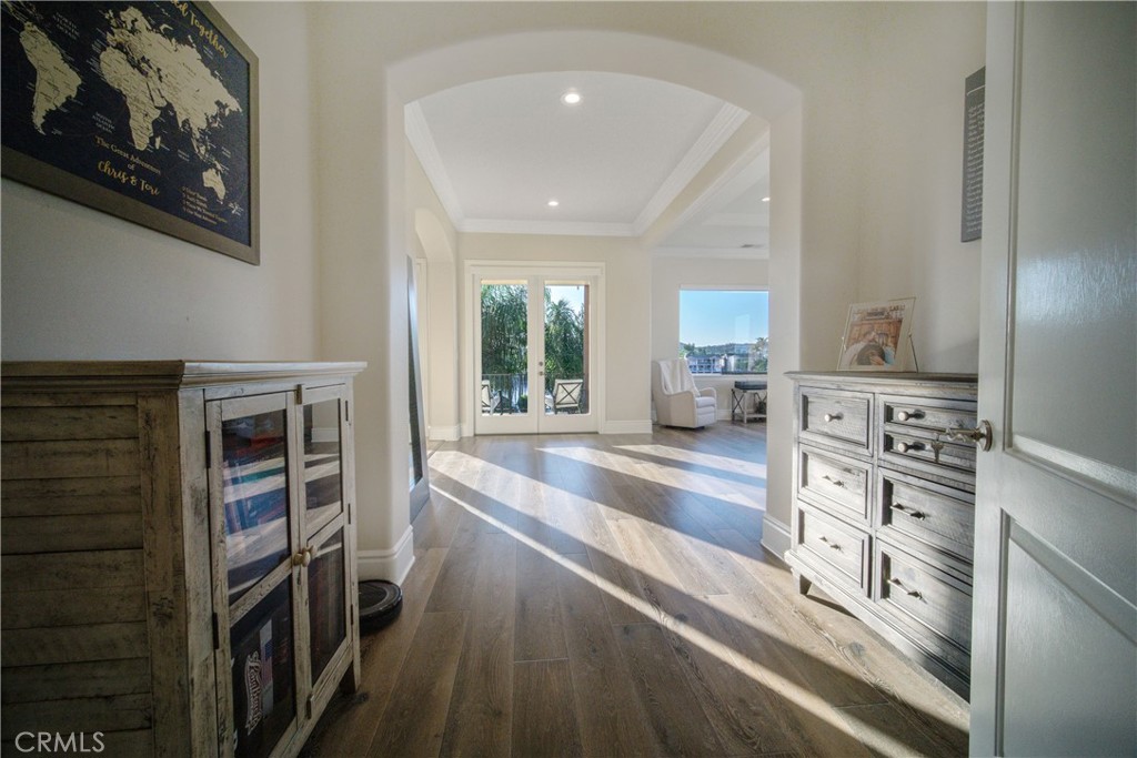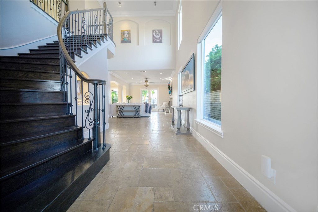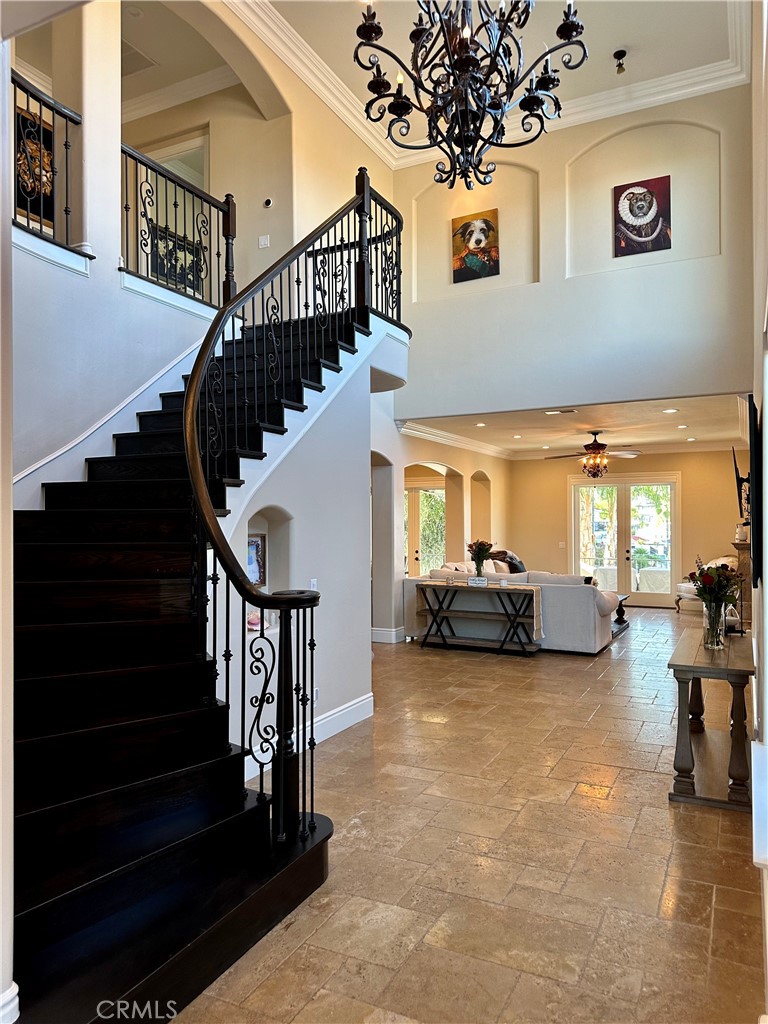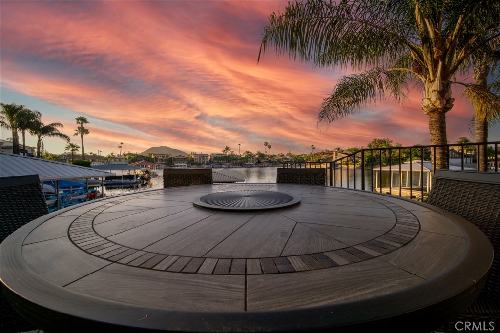 The moment you enter this Tuscan masterpiece, your dreams of lake living will be complete. This custom home is nestled on a cul de sac with no expense spared. A grand and huge two story foyer plus an amazing curved stair case welcomes you to this masterpiece. Located on the east bay of Canyon Lake, a gated community in Riverside County. One of five gated cities in California, Canyon Lake is an incredible place to live. This Tuscan beauty has one bedroom downstairs, a 3/4 bathroom and a powder room with the remaining bedrooms including the sprawling master suite upstairs, the master closet and bathroom are to die for. Gorgeous water views greet you from multiple balconies and windows. Luxurious plaster walls and soft corners provide a soothing flow throughout the home. In addition to the master suite, there are three other bedrooms upstairs, one of the bedrooms does not have a closet, it can be a theatre, a large office or a 5th bedroom. House has been updated with led lights, smart switches and smart smoke detectors. Custom automated window coverings installed in 2022. There is a small room attached to the garage for more storage. The driveway is flat for your toys and the large, three-car garage has plenty of storage built-ins. The tiered backyard has additional living and dining space, Jacuzzi, built in bar and entertainment space as well as turf for easy maintenance. Your private covered dock with lift is waiting for you.