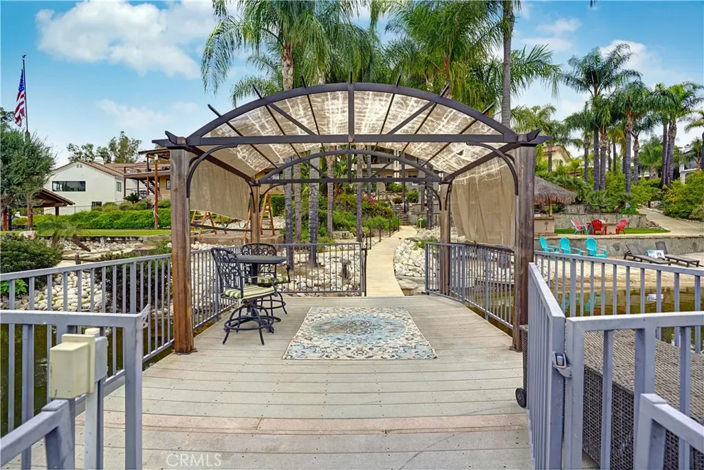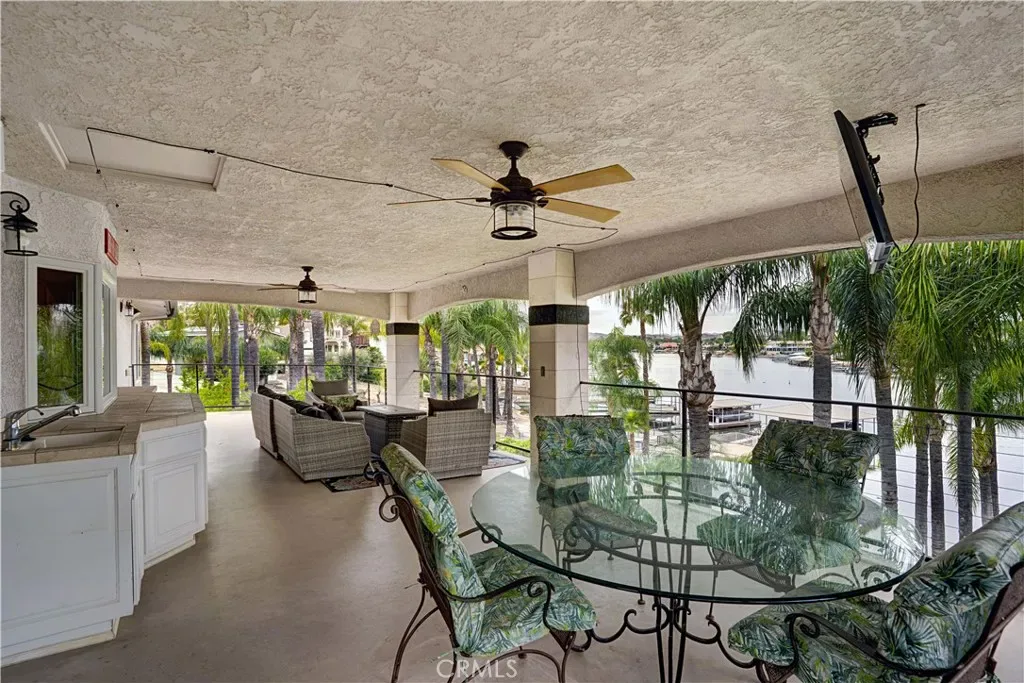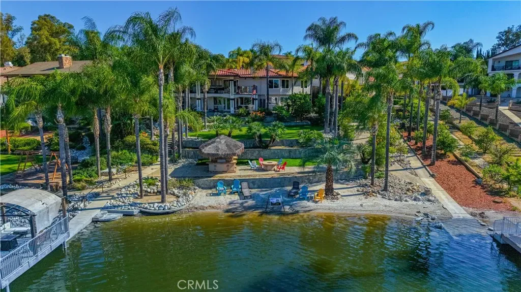 Experience true waterfront living at its finest. Tucked away at the end of a quiet cul-de-sac, this extraordinary property sits on an oversized, pie-shaped lot with approximately 150 feet of private water frontage and your very own sandy beach.The grounds feel like a private lakeside resort—expansive grassy areas, mature trees, stone-lined walking paths, a private trek deck pier with a covered pergola, and a covered cement dock with a lift create the ultimate outdoor retreat. Entertain effortlessly with a covered BBQ palapa with a fridge, fire pit, two large covered patios, and a tranquil rock stream and serenity plunge that add to the serene ambiance.Step through the double-door entry into a stunning great room and kitchen designed to capture breathtaking water and mountain views through expansive windows and sliding glass doors. The seamless indoor-outdoor flow makes everyday living feel like a vacation.The main level features a private primary suite with a beautifully appointed bathroom, great room with fireplace, dining room and large kitchen with an island, oversized laundry with plenty of storage and direct garage access for convenience. This home features an elevator that leads to the downstairs golf cart garage and interior of the home.Downstairs offers a spacious secondary living area/bonus room with a built-in bar, complete with a wine fridge, sink, microwave, fireplace and TV. There are also three additional bedrooms and two bathrooms—perfect for guests or multi-generational living.In addition to the attached two-car garage, there is an electric side gate with access to the golf cart garage, providing added flexibility for a golf cart, storage, or recreational toys.This is more than a home—it’s a rare opportunity to enjoy the relaxed, resort-style lifestyle that Canyon Lake is known for.