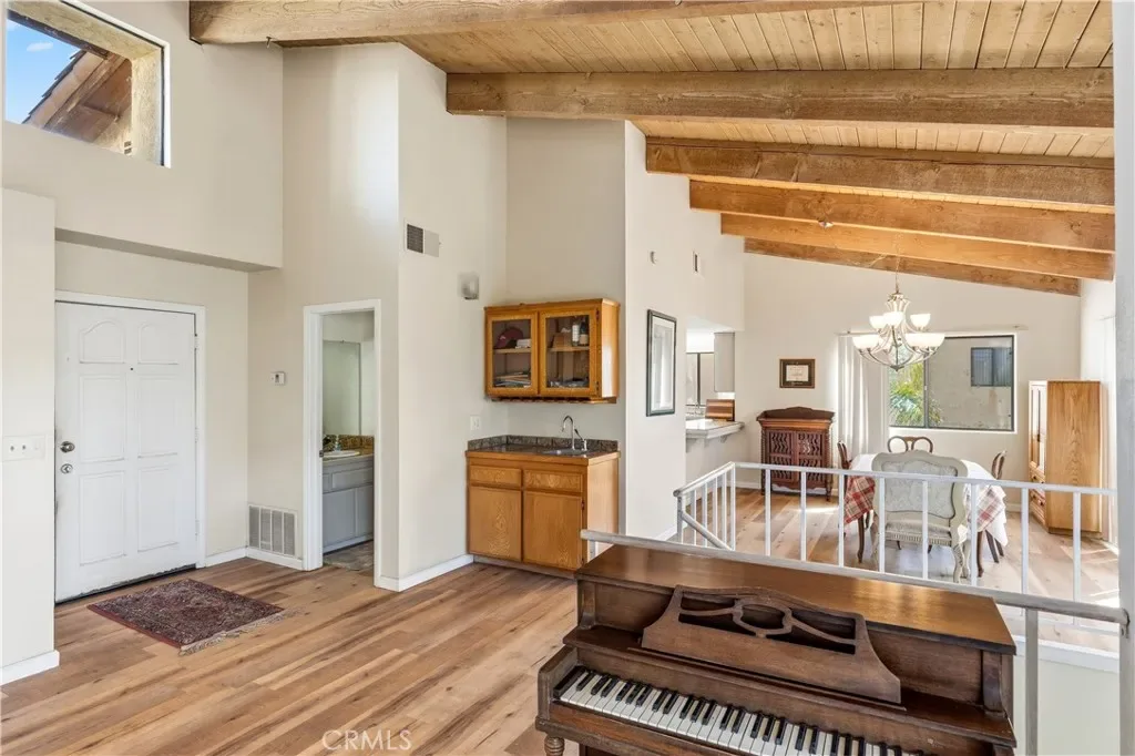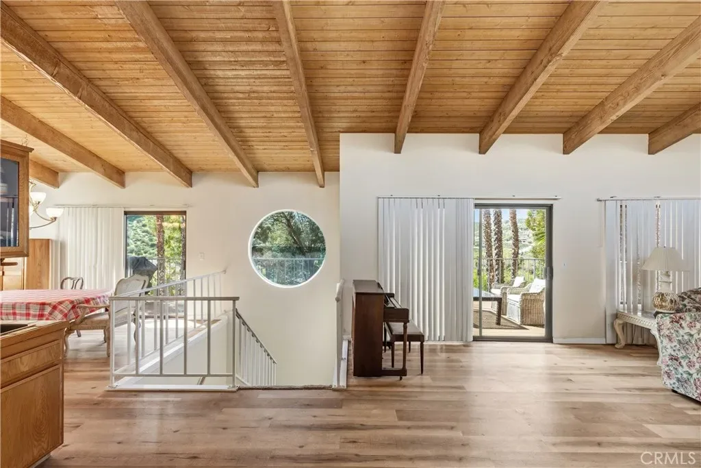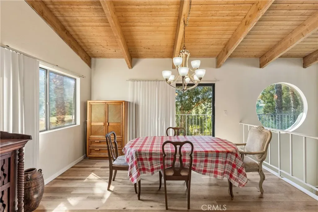 Upstairs, enjoy a spacious family room with stunning beamed ceilings, creating warmth and character throughout. Step outside to a beautiful and comfortable patio, perfect for relaxing or entertaining while taking in the peaceful surroundings. The private pool adds to the home’s appeal, offering your own retreat right at home.