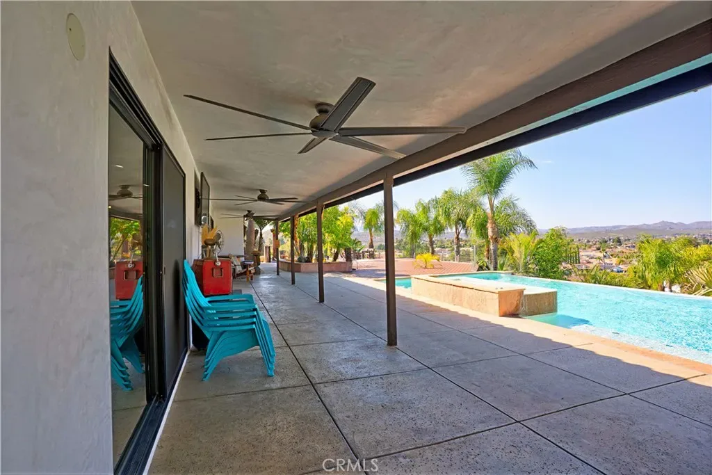 Step into your private backyard oasis featuring a stunning double negative-edge pool that captures sweeping canyon views. The expansive 1,600 sq ft Trex deck offers incredible space for gatherings, relaxing evenings, and taking in the scenery.