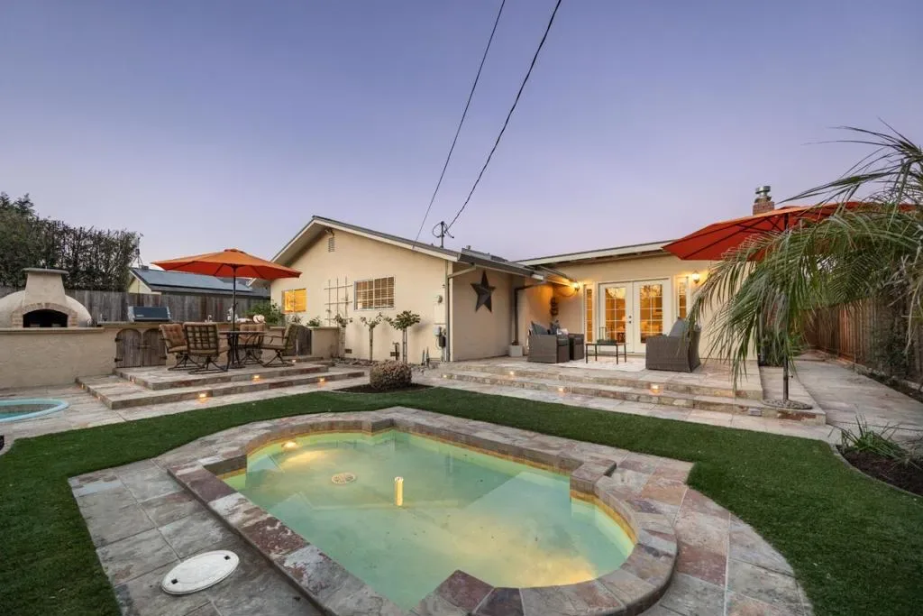A lovingly maintained home in one of Capitolas most desirable neighborhoods. Located in Cliffwood Heights, this single-level home offers ground-floor bedrooms, a functional floor plan, and a wonderful blend of comfort, character, and thoughtful upgrades. The front yard and driveway enjoy a pleasant ocean view, while the location offers easy access to Capitola Beach, New Brighton Beach, Capitola Village, local shops, cafes, restaurants, and Highway 1. Inside, features include original hardwood floors, tile entry, abundant natural light, skylights, separate living and family rooms, slate flooring with radiant heat in the family room, and two fireplaces, including one with a gas insert. The enlarged and remodeled kitchen features granite countertops, stainless steel appliances, portable island, and custom floor-to-ceiling cabinetry. Outdoor spaces include attractive slate patios and walkways, large deck, covered front porch with pergola, outdoor fireplace, wood-fired pizza oven, built-in gas BBQ with sink, water feature, raised garden beds, outdoor shower, and in-ground hot tub. Thoughtfully improved and exceptionally well cared for, this is a special Capitola property in an outstanding coastal location.