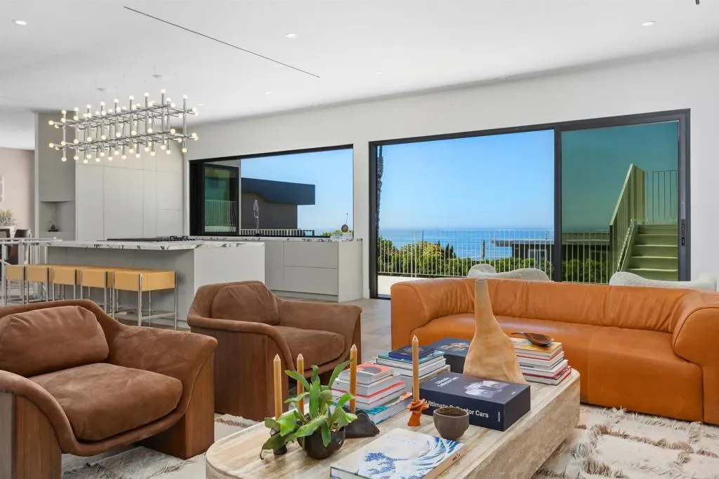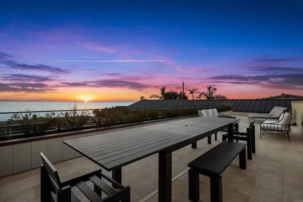 Step into a coastal masterpiece offering over 4,000 sq ft of refined living space, where every room is framed by sweeping, unobstructed ocean views. This exceptional home blends luxurious upscale design and wellness with features including: Five expansive ocean-view decks, over 1,800 sq ft, with vistas stretching to La Jolla and iconic surf breaks. Private outdoor retreat with a large grassy yard, stunning european style grass-edge pool, and oversized hot tub. Designer finishes throughout featuring Forms & Surfaces “Sunburst” entry doors, custom cabinetry and hardware, lighting by Serge Mouille, Isamu Noguchi, and Lightolier Temperature-controlled wine room for the discerning collector – Luxury wellness amenities including an infrared sauna, steam room, and cold plunge. Dual laundry for ultimate convenience. A show-stopping primary suite with a Hollywood-inspired open shower and freestanding soaking tub, all overlooking the Pacific. Dramatic cascading waterwall feature from a custom copper roof. Every detail has been thoughtfully curated to create a seamless indoor-outdoor coastal lifestyle unlike any other.