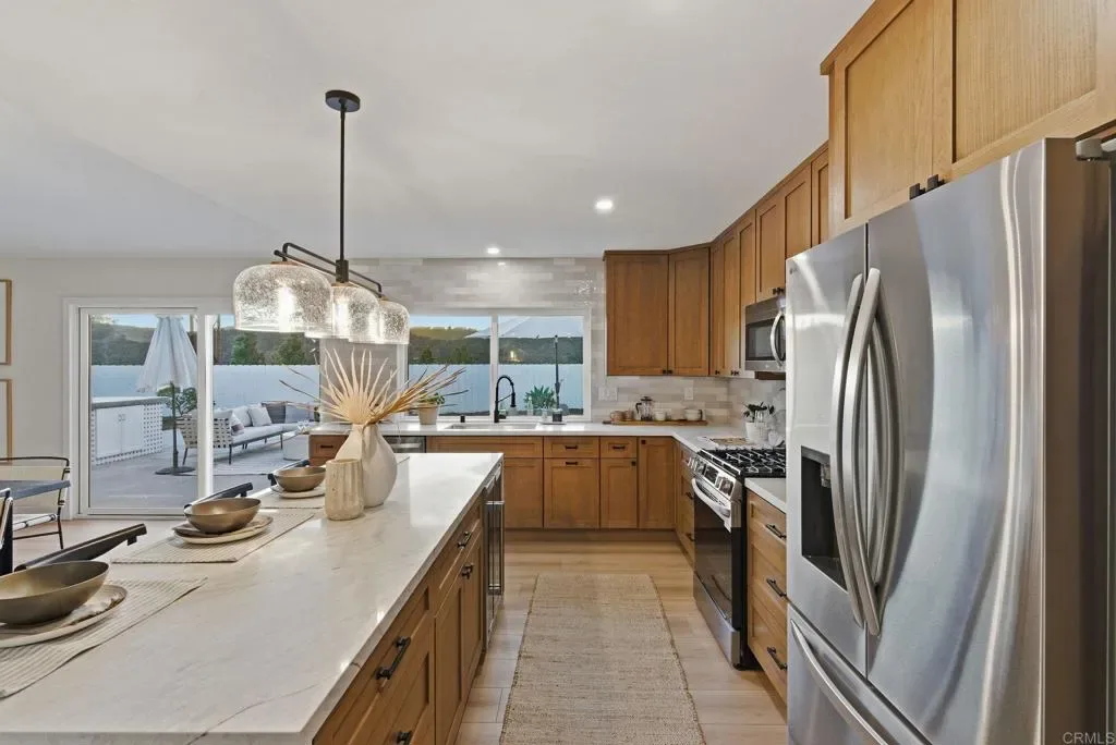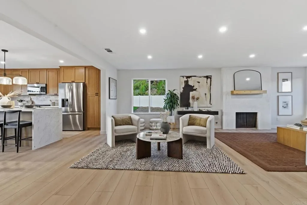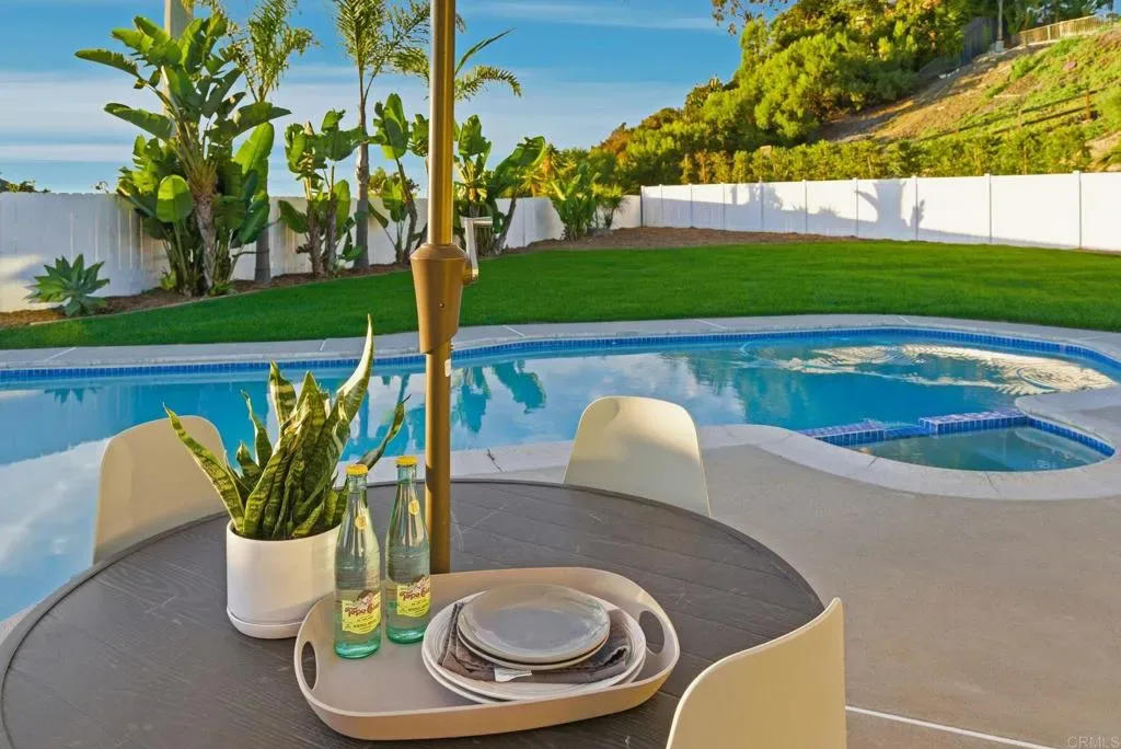 Experience the best of La Costa living from this single-level home set on an elevated cul-de-sac lot offering privacy, coastal breezes, and easy access to top-rated schools, beaches, golf, shopping, dining, and daily conveniences. Enjoy close proximity to La Costa Heights Elementary, La Costa Canyon High School, Omni La Costa Resort & Golf Course, The Forum, Gelson’s, Equinox, and miles of nearby coastline. Fully renovated in a modern, elegant style, this 4 bed, 2 bath home features a wide-open floor plan with nearly 2,000 sq ft, abundant natural light, and wide-plank flooring throughout. The reimagined kitchen includes a large center island, stainless steel appliance package with wine fridge, entertainment island, and a window pass-through bar for seamless indoor/outdoor flow. French doors from the primary suite open to a private backyard with pool, hot tub, large grassy area, and no homes directly behind. The 11,463 sq ft lot offers room for an ADU/pool house and RV parking in front. Additional highlights include central AC, updated finishes throughout, and a 2-car garage. A rare opportunity to enjoy single-level living, modern design, and a spacious usable lot in one of La Costa’s most desirable locations.