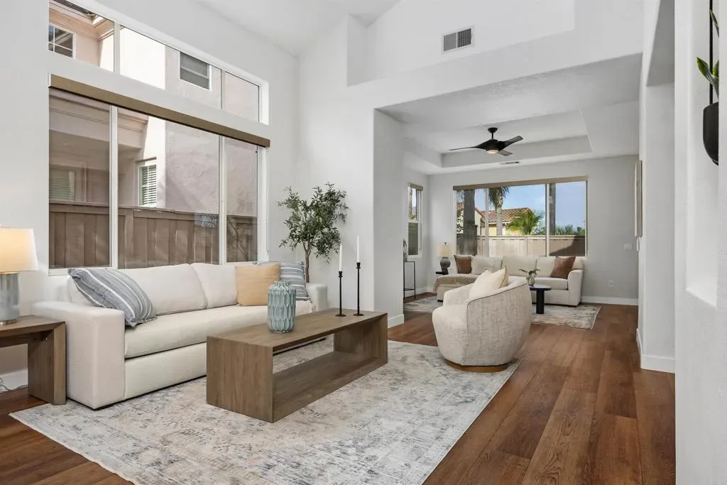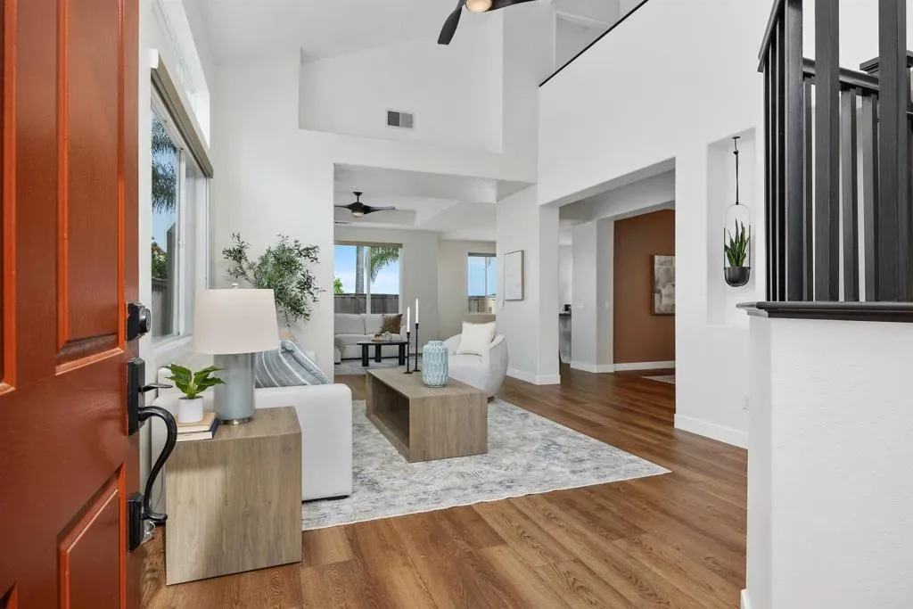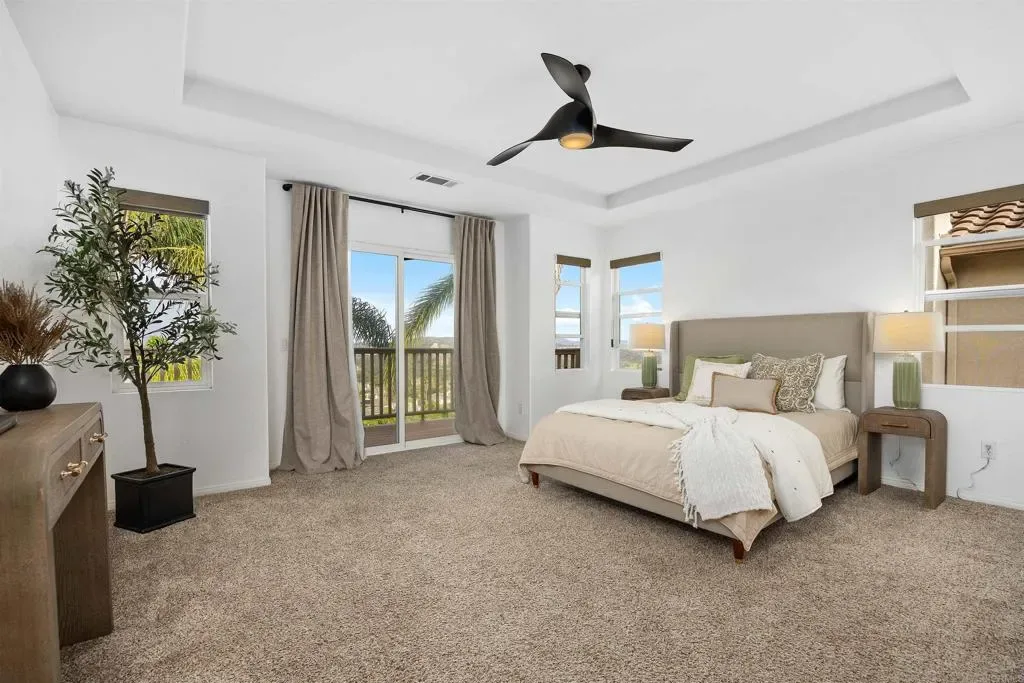 Welcome to Calavera Hills! Just in time for Summer and the New School Year. This view property is ideally positioned on Cay Drive, offering direct panoramic views of Calavera Hills and the surrounding preserve. Enjoy the natural setting from the private balcony off the primary suite—an ideal place to take in the scenery and coastal breezes. The home features a spacious, open floor plan enhanced by a thoughtful interior remodel that creates a more modern, connected living space. With four bedrooms, including a main-level bedroom and full bathroom, the layout is well-suited for guests, multigenerational living, or a home office. Large windows throughout bring in natural light and highlight the views, while each room offers generous closet space, updated window coverings, and modern ceiling fans. The entry opens to an expansive living area designed for both everyday living and entertaining. The kitchen serves as the center of the home, featuring a breakfast bar, stone countertops, stainless steel appliances, and ample storage. The backyard is designed for low-maintenance, year-round use with turf and full perimeter hardscape, creating a private and functional outdoor space. Additional features include an upstairs laundry room, well-appointed secondary bathroom, and abundant storage throughout. Close proximity to Calavara Hills Community Center and Park and the highly regarded Calavera Hills Elementary and Middle School, this home also offers convenient access to Carlsbad Village, known for its restaurants, coffee shops, and shopping, as well as Carlsbad’s beautiful beaches.
