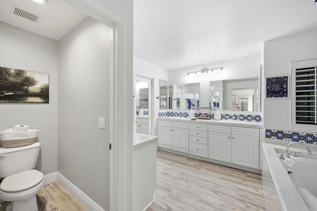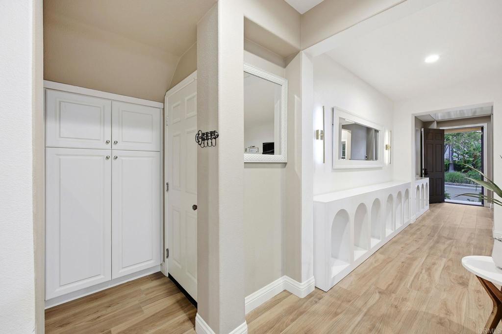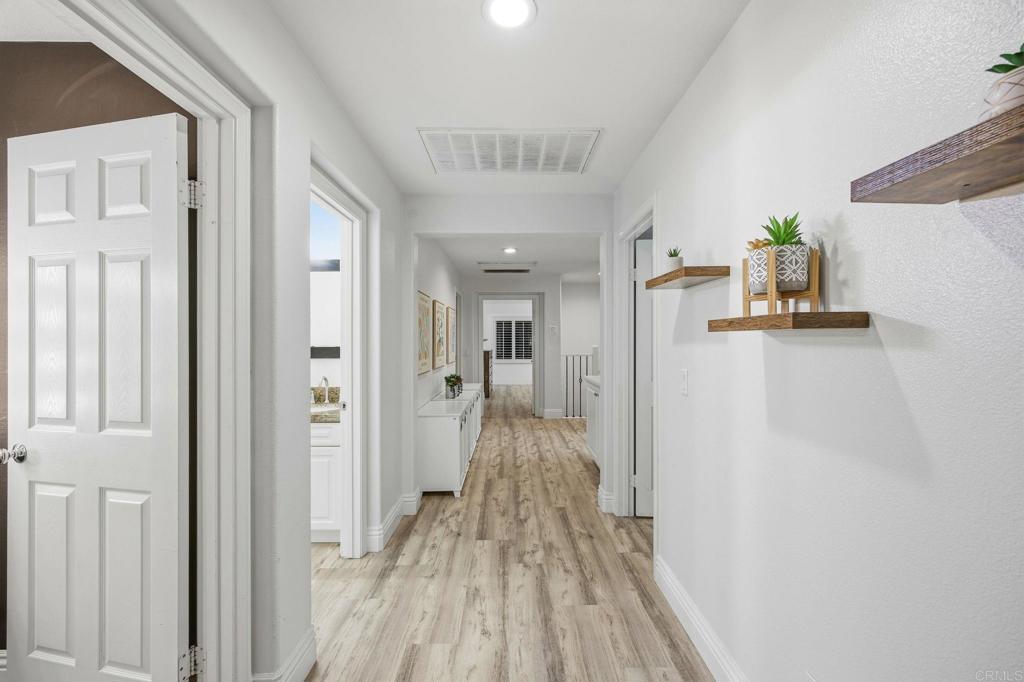 This gorgeous home is set on a quiet cul-de-sac on an oversized, extra-deep lot with no immediate rear neighbors—offering a rare opportunity to embrace the coastal Carlsbad lifestyle. Spanning 2,891 square feet, the home features four bedrooms PLUS a dedicated office and three full bathrooms, all within a light-filled, thoughtfully designed floor plan that balances elegance, comfort, and privacy. A gracious entry opens to expansive living room perfect for entertaining there is also a main-level bedroom and full bathroom, ideal for guests or multigenerational living. The kitchen serves as the heart of the home, showcasing a custom center island, solid surface countertops, premium stainless steel appliances, a wine refrigerator, and abundant storage. The living room features a fireplace and dramatic bifold doors that open to the backyard, creating seamless indoor-outdoor living, while a dedicated dining room completes the space. Outside, the private south-facing backyard is designed for year-round enjoyment, featuring extensive hardscape, lush landscaping, a cozy fire pit, and a large BBQ island with palapa. The extra-deep yard offers multiple spaces to gather, entertain, and create lasting memories. Additional highlights include an upstairs laundry room, plantation shutters, secondary bathrooms, air conditioning, a whole house fan, and owned solar—delivering both luxury and efficiency. Residents enjoy walkability to the community pool and top-rated Calavera Hills Elementary and Middle School, while Carlsbad’s best beaches and the vibrant Carlsbad Village—home to exceptional dining, coffee shops, and shopping—are just 4.5 miles away.