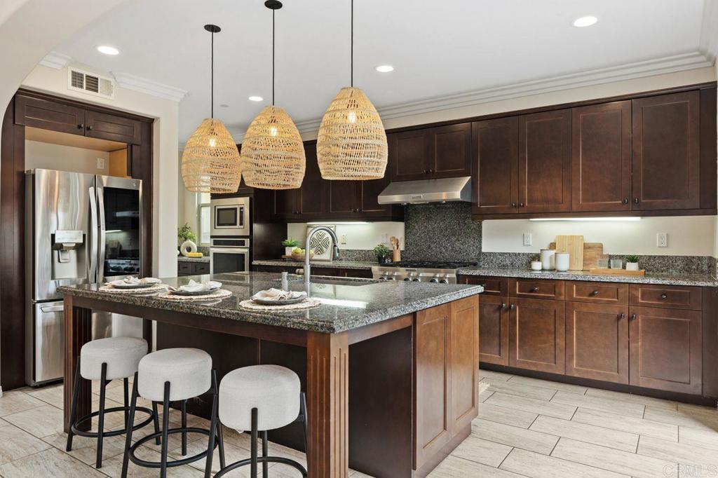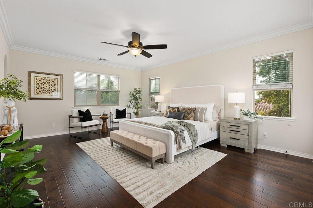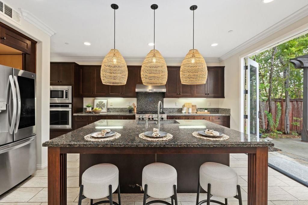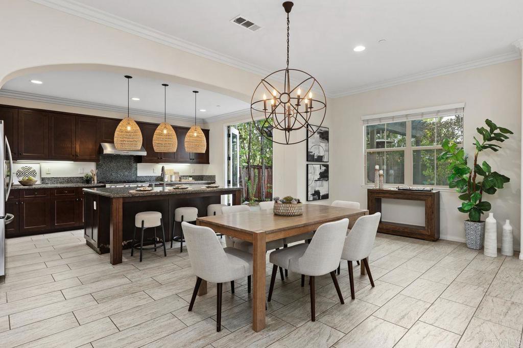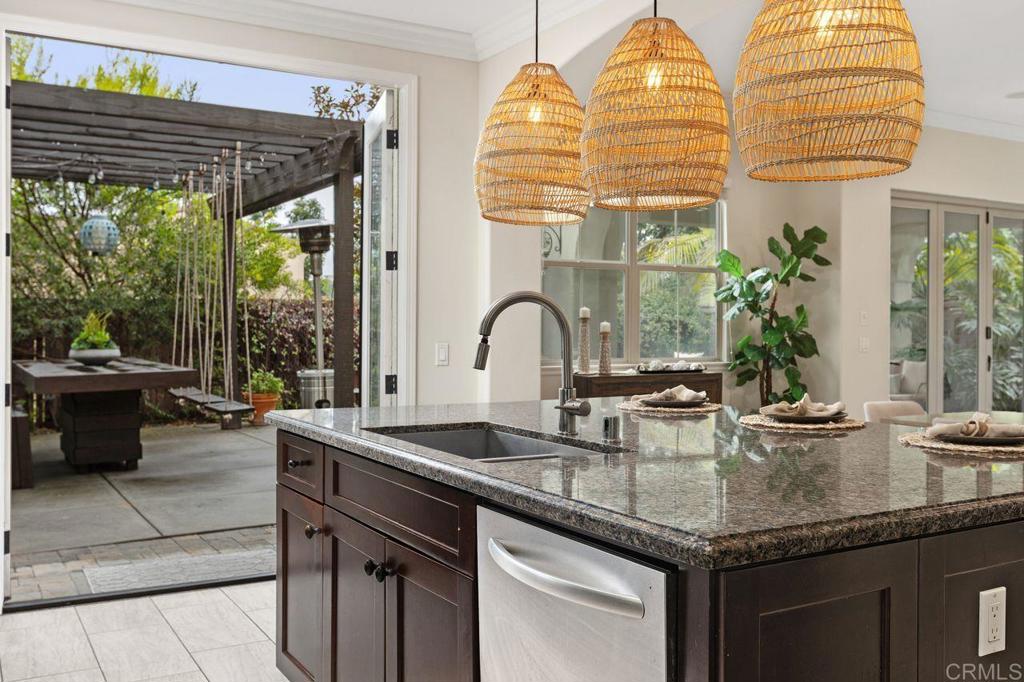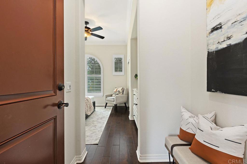 This bright and comfortable home has that “just right” feel the moment you step through the elegant wood door leading into your private courtyard. Lush landscaping, tranquil atmosphere, and a stunning water feature make it a place you’ll truly love coming home to. The courtyard separates the guest house, which features a spacious bedroom and bathroom filled with natural light, this guests home is perfect for your needs. This home is designed for seamless indoor-outdoor living, with bi-folding glass doors that open to a beautifully landscaped backyard complete with a custom built-in BBQ, dining table, and swinging chairs—an entertainer’s dream. Inside, you’ll fall in love with the open-concept layout, chef-style kitchen, oversized center island, walk-in pantry, and light colored large-format tile flooring. Rich tone cabinetry, custom crown moldings, stunning dark wood floors, and large windows throughout the home bring in an abundance of natural light and elevate the overall feel. The family room offers a cozy fireplace with easy access to both the front courtyard and backyard. A grand staircase leads to a well-thought-out upper level, where the flex loft anchors the space. Each bedroom has its own bathroom and is thoughtfully separated, offering privacy and comfort for everyone in the main house. Offering 3,003 square feet of luxury living, this home also features a fully PAID SOLAR system and a tandem three-car garage—just a few of the many standout details. Residents enjoy resort-style amenities including poolside cabanas, a separate children’s pool, pickleball courts, playgrounds, BBQ areas, and scenic walking trails. Located within the highly sought-after Carlsbad Unified School District, one of the top-rated districts in Southern California, this home truly checks every box. OPEN HOUSE Sat-Sun 1-4