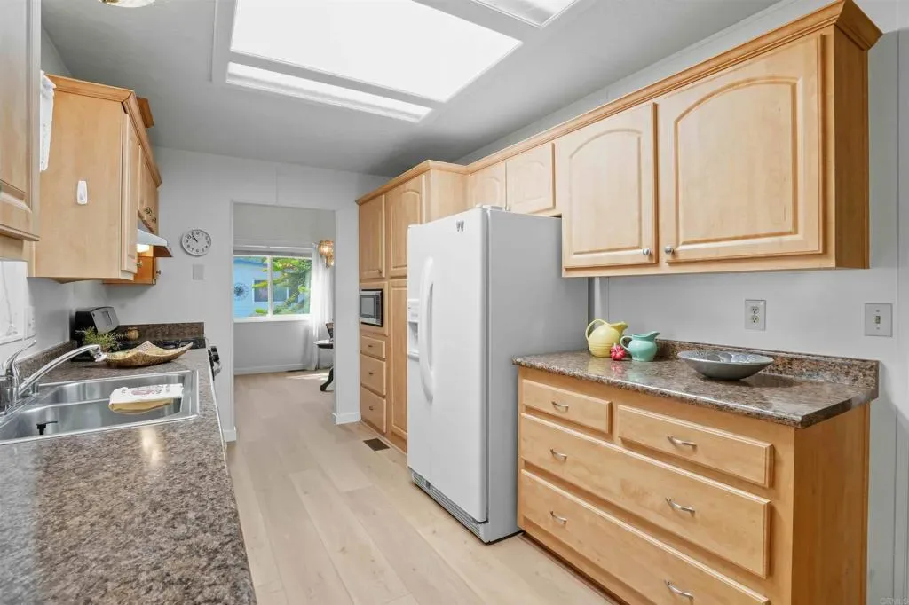 Elegant Coastal Living in Guard-Gated Rancho Carlsbad (55+ Community) Experience refined, low-maintenance living in the highly sought-after Rancho Carlsbad Community. This beautifully updated residence offers a peaceful, resort-style lifestyle just minutes from the coast, premier shopping, dining, and golf. Step inside to discover a thoughtfully upgraded home featuring newer luxury vinyl plank flooring throughout and tasteful tile in the baths and laundry area. The light-filled, open layout is both spacious and easy to navigate—designed for comfort, convenience, and effortless living. The inviting living and dining areas include built-in china cabinetry, perfect for displaying treasured pieces, while the modern kitchen offers generous cabinet space for everyday ease or entertaining guests. Two full bathrooms have been stylishly updated with refined finishes. Offered partially furnished for added convenience. Features & Highlights: Spacious, open-concept floor plan with abundant natural light Updated kitchen with ample storage Two beautifully refreshed full bathrooms Full-size washer & dryer conveniently located inside Private golf cart included for effortless community access Outdoor Living: Enjoy low-maintenance outdoor spaces, including a generous side patio—ideal for morning coffee, quiet afternoons, or evening relaxation. Resort-Style Community Amenities: 24-hour guard-gated security Clubhouse, pool, spa, and fitness center Scenic walking trails Vibrant social calendar and welcoming community atmosphere Ideally located near Carlsbad Village, medical services, fine dining, and convenient I-5 access, this home offers the perfect balance of tranquility and accessibility. Age Requirements: One resident must be 55+, second occupant 45+. Discover why so many choose Rancho Carlsbad for its exceptional lifestyle—where comfort, connection, and coastal elegance come together