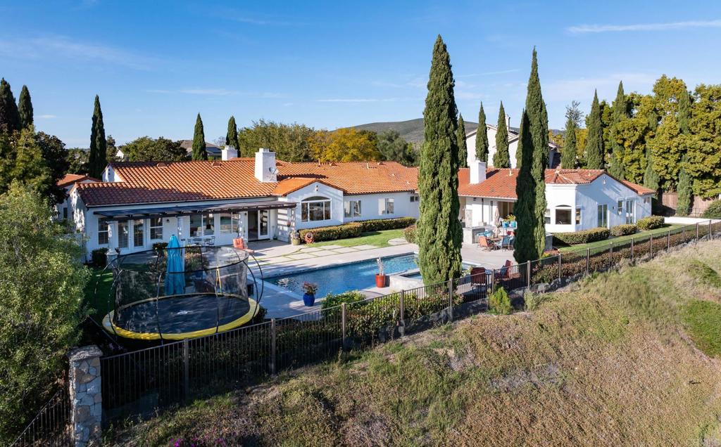 Rare Hilltop Compound in The Ranch at Carlsbad Featuring Two Fully Independent Homes! Opportunities like this rarely come to market in The Ranch at Carlsbad. This private single-level estate offers two fully independent residences plus a separate pool and game pavilion, creating a flexible layout ideal for multi-generational living, extended family, guests, or private work-from-home space. The approximately 3,800 sq ft main residence features three bedrooms and spacious living areas designed for comfortable everyday living and entertaining. The 1,400 sq ft second residence includes two bedrooms, a full kitchen with high-end appliances, laundry, independent climate control, and a private street entrance. Wider doorways throughout the second residence provide enhanced accessibility. At the center of the property is a 900 sq ft game and pool pavilion with its own entrance, bathroom, bar-style kitchenette, and independent climate control, allowing the space to function as an entertainment pavilion, third guest suite, or additional living quarters. The hacienda-style architecture creates exceptional privacy around the pool, California Room, and outdoor entertaining areas, while the south-facing hilltop orientation captures beautiful natural light and scenic sunrise and sunset views. Additional highlights include a custom 1,000-bottle temperature-controlled wine cellar and tasting room. Located in The Ranch at Carlsbad, residents enjoy scenic walking trails and walking distance to top-rated schoolsincluding Olivenhain Pioneer Elementary, Diegueño Middle School, and La Costa Canyon High School. Just minutes away are Omni La Costa Resort & Golf Club, coastal beaches, Carlsbad Village dining, and premier shopping.