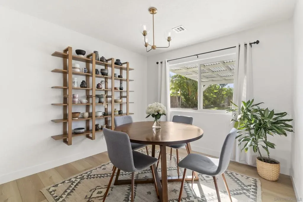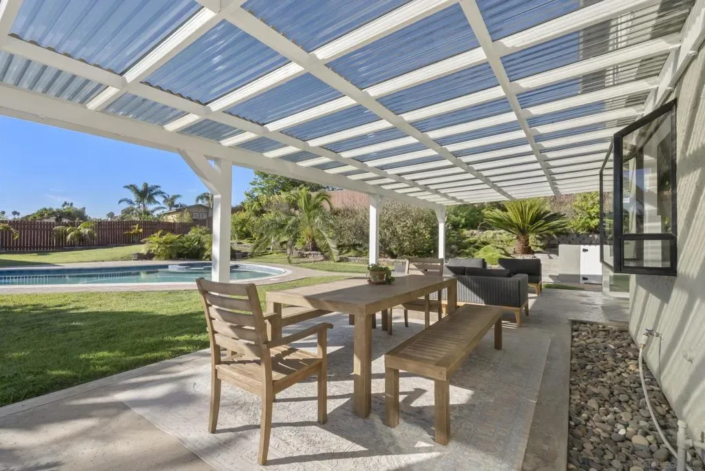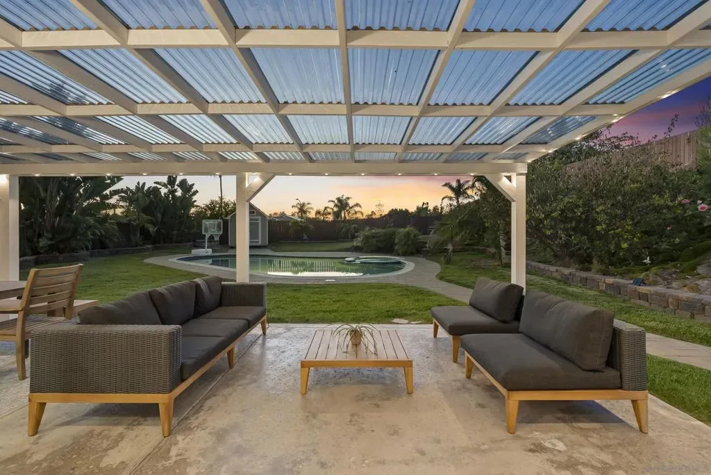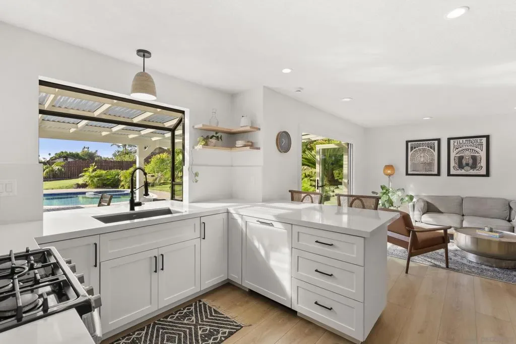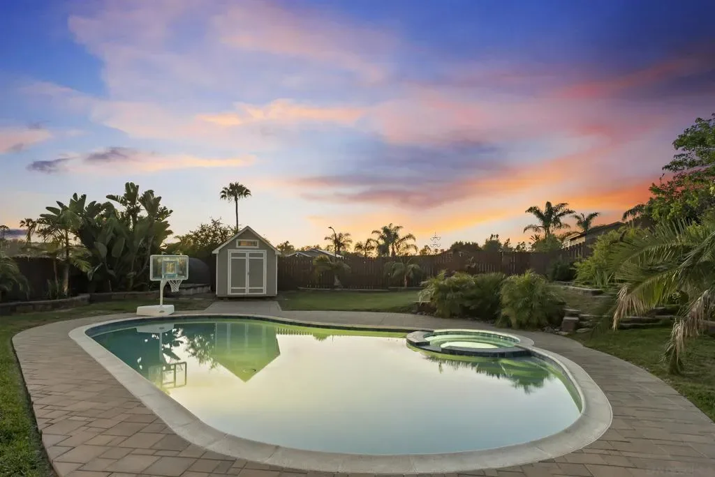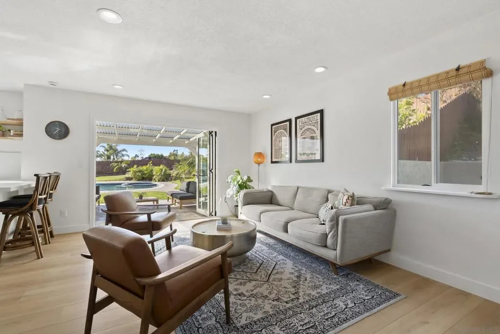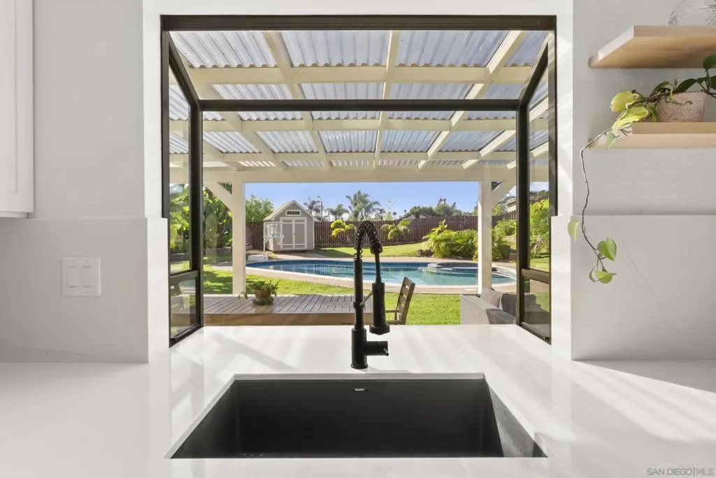 Beautifully remodeled 4-bedroom, 2.5-bath residence set on an expansive 14,343 sq. ft. lot with lush mature landscaping, fruit trees, a private pool, and spa. Enjoy exceptional privacy with no rear neighbors – an increasingly rare offering in the area. Designed for effortless California living, bi-fold doors open to a fully covered patio, creating a seamless indoor-outdoor experience. The home features a bright, open-concept layout with vaulted ceilings and generous living and dining spaces. The upgraded kitchen offers quartz countertops and modern fixtures, complemented by new flooring throughout. Thoughtfully upgraded bathrooms include a fully tiled primary suite with dual shower heads and a solid teak vanity. Extensive improvements include new flooring, kitchen surfaces and fixtures, new pool equipment, and updated exterior paint, gutters, doors, and patio roofing. The spacious lot also offers room for a potential ADU. Additional highlights include fully paid solar, RV parking, and no HOA or Mello-Roos. Ideally located just minutes from Carlsbad Village, pristine beaches, and the scenic trails of Calavera Hills Preserve, with access to top-rated schools.