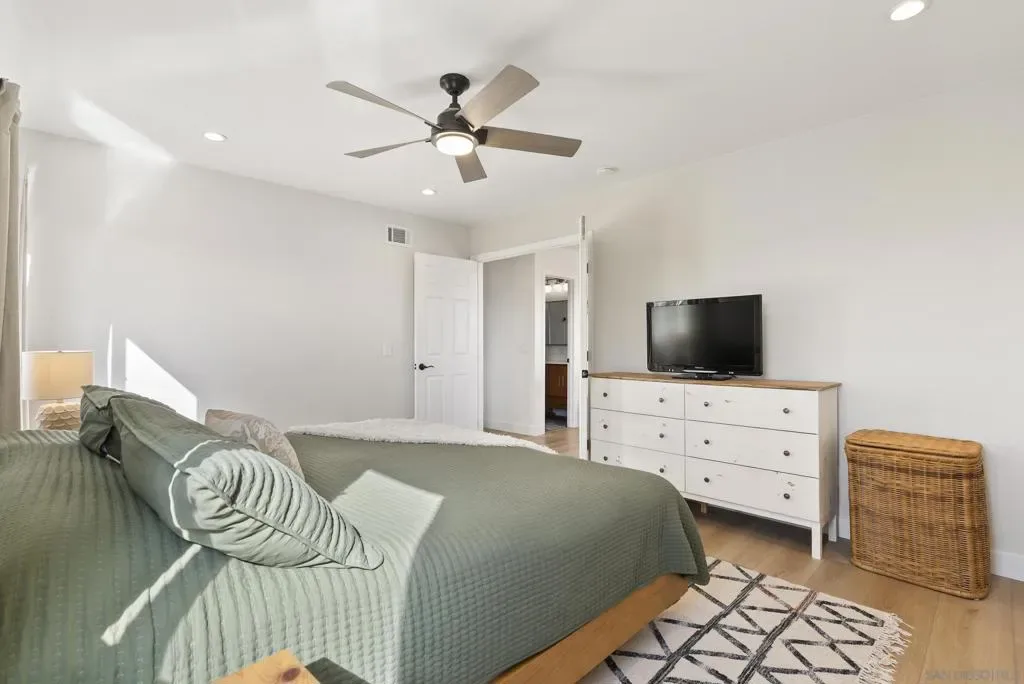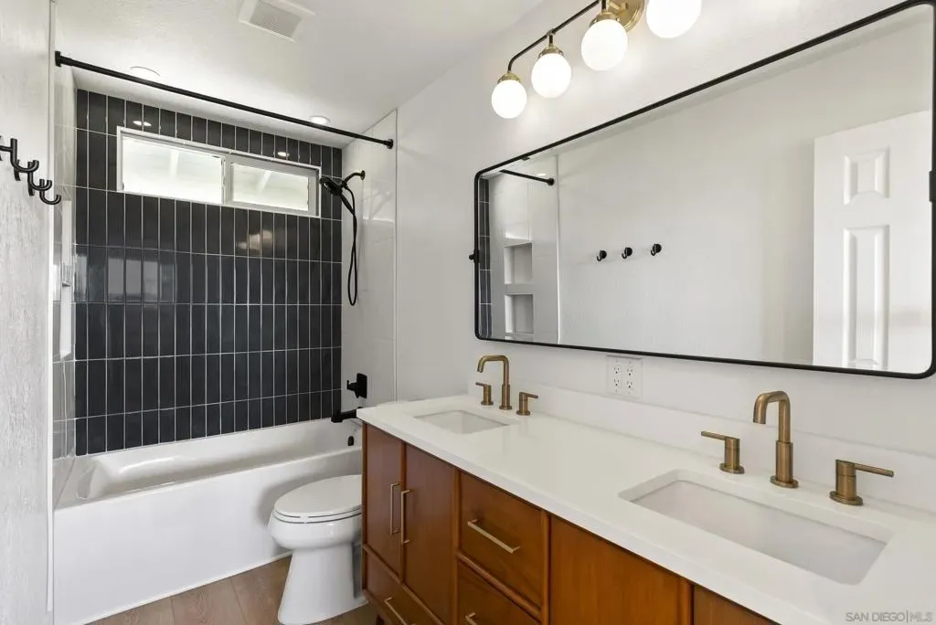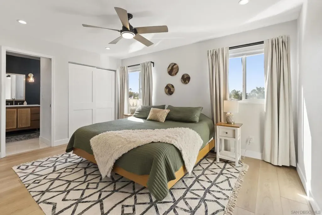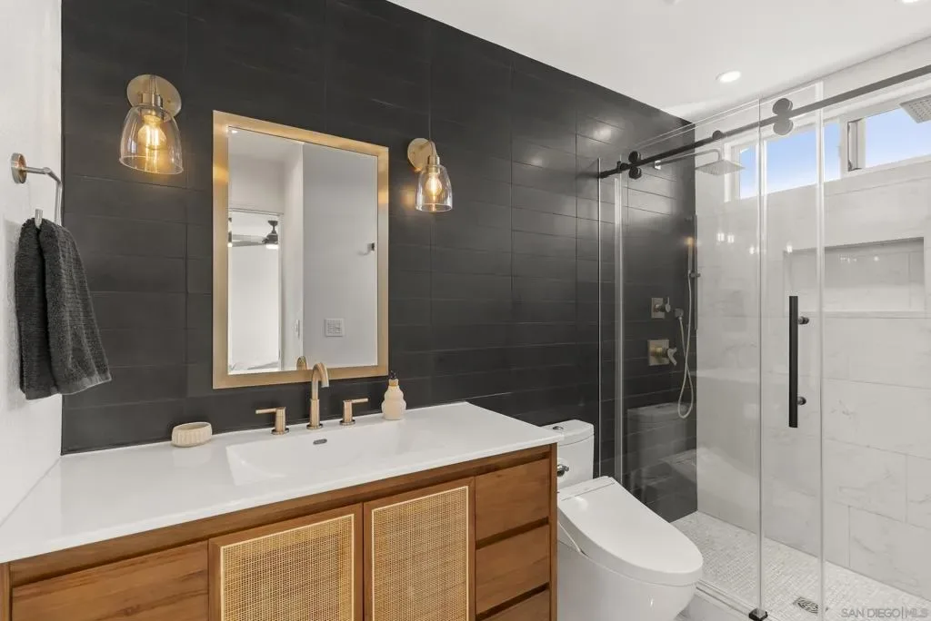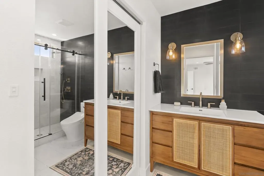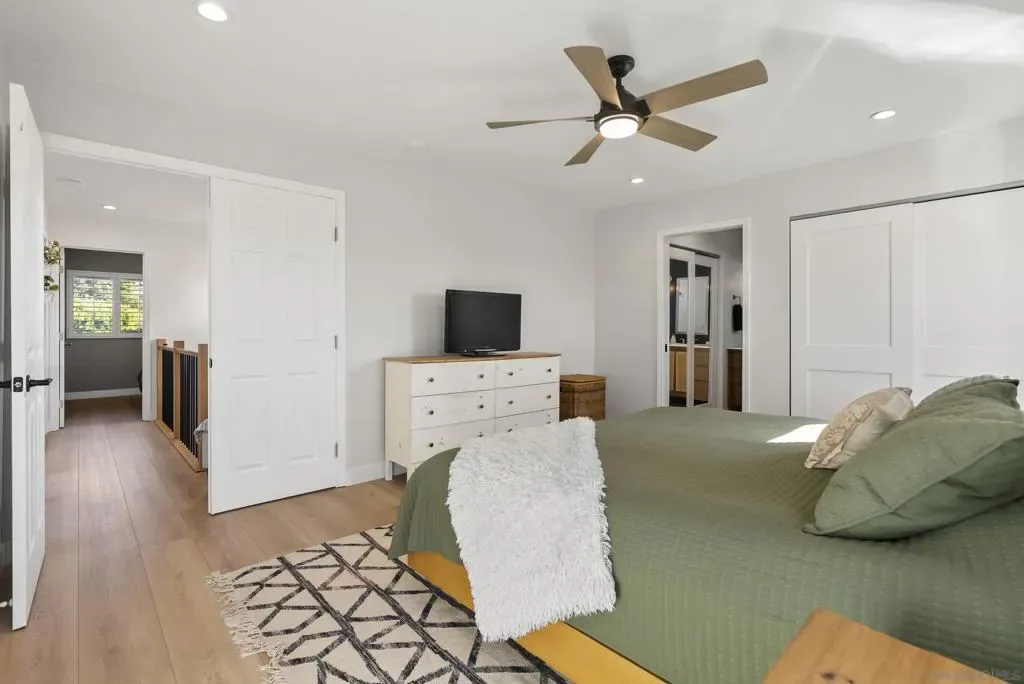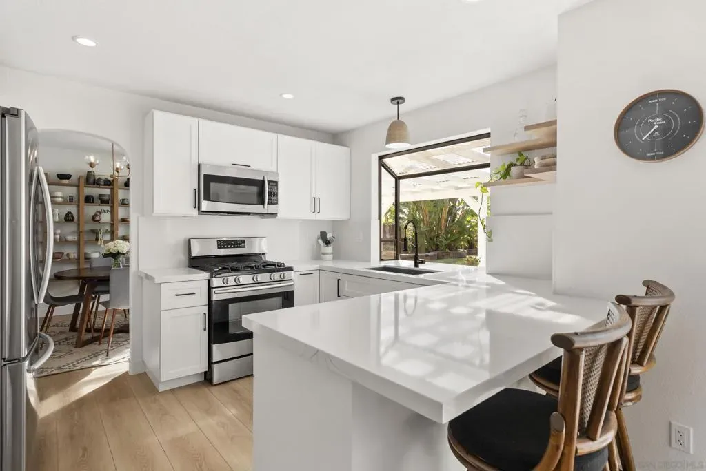 Beautifully remodeled 4-bedroom, 2.5-bath residence set on an expansive 14,343 sq. ft. lot with lush mature landscaping, fruit trees, a private pool, and spa. Enjoy exceptional privacy with no rear neighbors – an increasingly rare offering in the area. Designed for effortless California living, bi-fold doors open to a fully covered patio, creating a seamless indoor-outdoor experience. The home features a bright, open-concept layout with vaulted ceilings and generous living and dining spaces. The upgraded kitchen offers quartz countertops and modern fixtures, complemented by new flooring throughout. Thoughtfully upgraded bathrooms include a fully tiled primary suite with dual shower heads and a solid teak vanity. Extensive improvements include new flooring, kitchen surfaces and fixtures, new pool equipment, and updated exterior paint, gutters, doors, and patio roofing. The spacious lot also offers room for a potential ADU. Additional highlights include fully paid solar, RV parking, and no HOA or Mello-Roos. Ideally located just minutes from Carlsbad Village, pristine beaches, and the scenic trails of Calavera Hills Preserve, with access to top-rated schools.