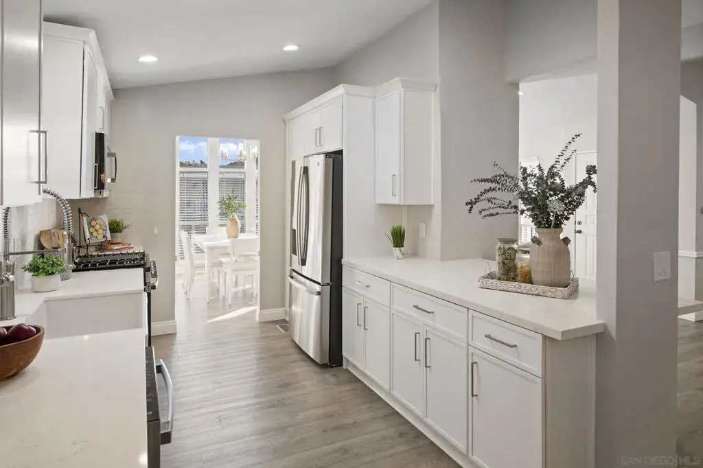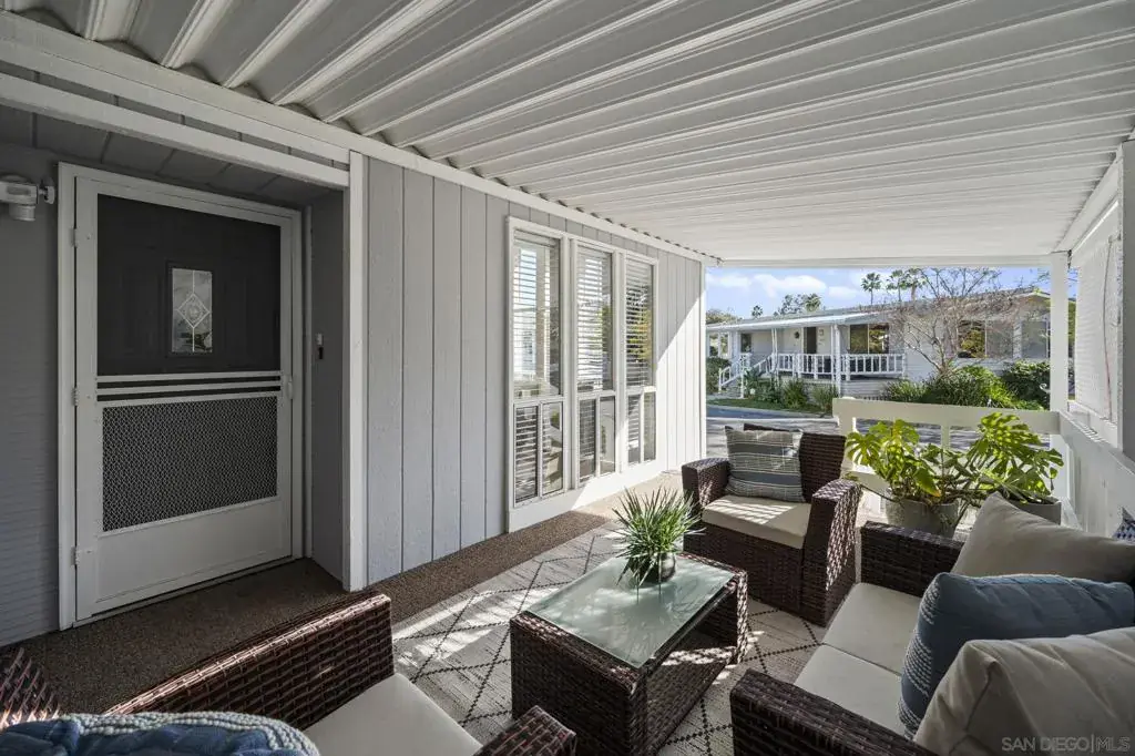 Welcome to Rancho Carlsbad, a highly sought-after, private, gated 55+ Lifestyle Resort Community in the heart of coastal Carlsbad, California. This recently updated home is ideally situated along the coveted and rarely available street of Don Rodolfo backing up to the serene Calavo Creek bed offering exceptional privacy and serene natural surroundings. Featuring 3 bedrooms, 2 bathrooms, and approximately 1,931 square feet of spacious living, the home welcomes you with vaulted ceilings and abundant natural light. The beautifully remodeled kitchen showcases all-new slim-shaker cabinetry, quartz countertops, a large farmhouse sink, and new stainless-steel appliances, including a gas range with griddle. The thoughtful floor plan offers two living areas and two dining spaces, perfect for both entertaining and everyday comfort. The primary suite includes generous closet space, and both the primary and secondary bathrooms have been tastefully updated. Additional highlights include updated luxury vinyl plank flooring throughout, a newer HVAC system, water heater, and a new roof installed in 2021. Enjoy outdoor living from the covered front porch or relax on the private flagstone patio overlooking the creek bed—an ideal setting to unwind and enjoy nature. A spacious outdoor storage shed adds extra convenience. No space rent. You own the land. Rancho Carlsbad offers a vibrant lifestyle with resort-style amenities, including pickleball and tennis courts, a heated pool and spa, fitness center, billiards and game rooms, banquet facilities, and 35 different group clubs. RV parking is also available. Don’t miss this rare opportunity to own a beautifully updated home in one of Carlsbad’s most desirable communities—a true piece of paradise.