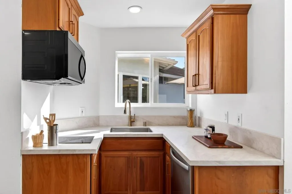 Fully renovated Carlsbad coastal charmer on Bienvenida Cr cul-de-sac with nearly 10,000 sq ft lot + fully permitted ADU with laundry & yard. 5 bed / 3 bath + yoga room/office, main house with downstairs primary suite that lives like a single level*. Plus a private ADU with separate entrance, 1 bed / 1 bath, in-unit laundry, full kitchen, soaring ceilings & private yard. *NO HOA!!* Custom cabinetry with pull-out shelving & storage galore, Taj Mahal quartz counters with full-height backsplash, cabinet to ceiling slab behind stove, custom rollout cabinet with countertop, mixer/blender garage w/ outlet, LVP flooring throughout, dual-pane windows, dual-zone A/C, Decora outlets/switches, custom closet systems in bedrooms. All new appliances: built-in Forno fridge, matching 36″ range & dishwasher, built-in ice maker, XL Kraus sink w/ polished nickel bridge faucet, recessed lighting with halo effect. Additional Wet bar in living room with Kraus sink, cup washer & built-in wine/drink fridge. Bathrooms fully redesigned with imported tile, new vanities, custom shower glass, ceiling-mounted shower head in primary, Kohler & Delta fixtures throughout, new Kohler toilets, new water lines, valves & ABS sewer line. Wood-burning fireplace with new tile & mantel. Epoxy garage floors w/ tons of built-in cabinetry. Walk to Kelly Elementary & Carlsbad schools. Close to beach & lagoon. Flagstone pavers, mature landscaping, new fencing, gates, sod & irrigation. Close to freeway, hiking trails, Carlsbad Village, tons of shopping, restaurants & more!
