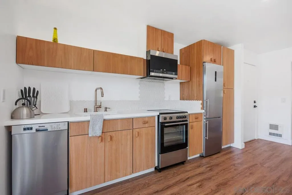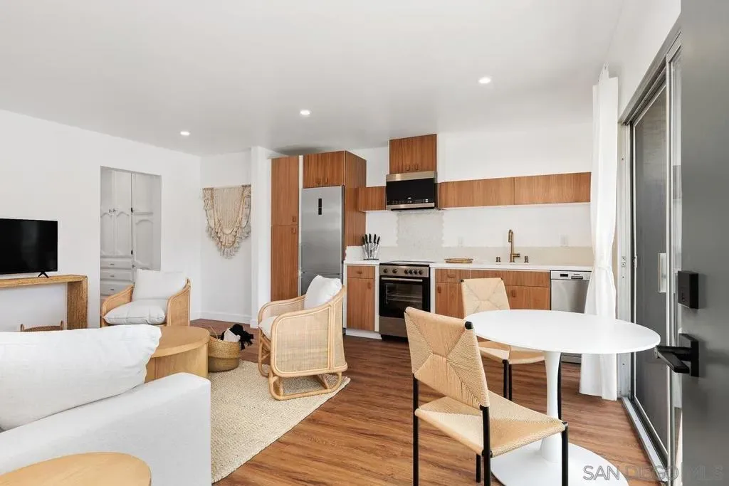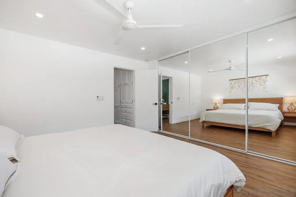 A rare opportunity on the waterfront of the Carlsbad Lagoon – a fully renovated Mid-Century 4-plex with a private boat dock in one of Carlsbad’s most peaceful coastal settings, featuring three 1-bedroom/1-bath residences and one 2-bedroom/1-bath residence, each with private patios and balconies. Each unit captures direct water views and offers private outdoor space, blending seamless indoor-outdoor living just steps from the lagoon beach and minutes to Carlsbad Village. Interiors are thoughtfully updated with custom teak cabinetry, quartz countertops, Italian porcelain tile, high-end appliances, reinforced balconies, and IPE wood decking. Fully furnished and turnkey, the property includes a private gated-entry unit ideal for an owner-user. Zoned for 30+ day rentals with potential to add two units above the garage, this is a distinctive waterfront investment with lifestyle appeal and long-term upside.