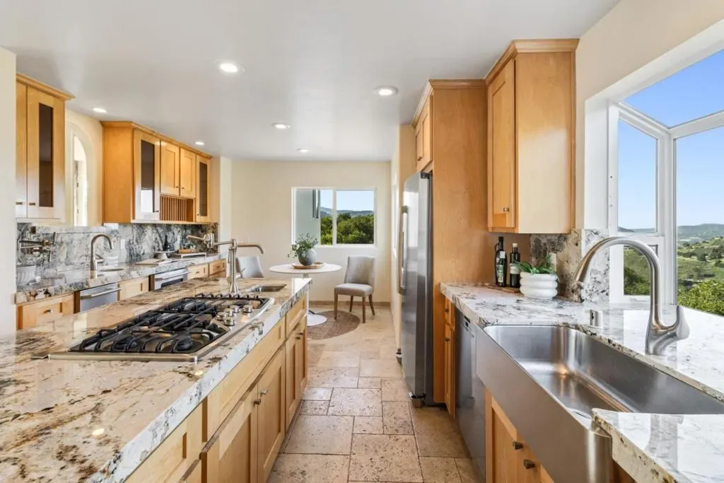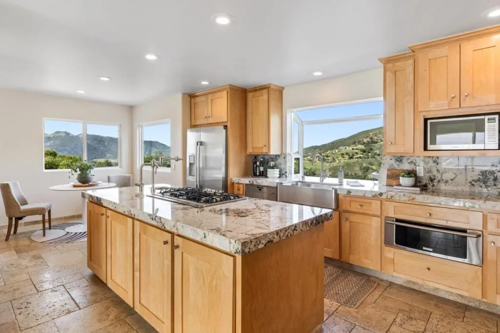 Perched above Carmel Valley Village, this stunning contemporary home captures the essence of California living with sweeping Santa Lucia mountain views and year-round sunshine. Featuring 3 bedrooms and 2.5 baths including two elegant primary suitesthis freshly painted residence showcases marble floors, high ceilings, and walls of glass that flood the interiors with natural light. The chefs kitchen is an entertainers dream with double ovens, warming drawers, wine fridges, and an ice maker, opening to a dining room and living area anchored by a grand river rock fireplace. Outdoor spaces include a stone fireplace, patio with hot tub, koi pond, and walking bridge surrounded by drought-tolerant landscaping. The detached guest casita offers its own kitchen, bath, and private parking. Gated entry, paver driveway, security system, and two-car garage complete this exceptional Carmel Valley retreat.