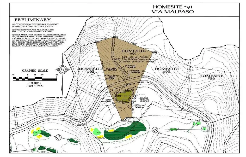 Welcome to Lot 91, one of the last remaining ocean view lots offered in Tehama. This exquisite 6.31 acre lot offers a building envelope designed to highlight the views of Monterey Bay, the city lights below and the Santa Cruz Mountains across the bay. Tehama is a private, gated community conveniently located just 3 miles inland between Carmel Valley and Monterey, and only minutes from world-renowned golf courses, shopping, dining, wine tasting, hiking and biking trails, sandy beaches, a regional airport and the famous Laguna Seca Raceway. Enjoy the serene lifestyle within nature and close proximity to the Tehama Golf Club and the Tehama fitness center. A social membership to the exclusive Tehama Golf Club is included with the purchase, offering access to multiple dining venues, social events throughout the year, and a full range of amenities at the fitness center including two pools, hot tub, sauna, tennis and pickleball courts, weight machines, organized fitness classes and personal trainers. Concept drawings by Sterling Huddleson Architectural firm are available for a 6,300 sq. ft home.