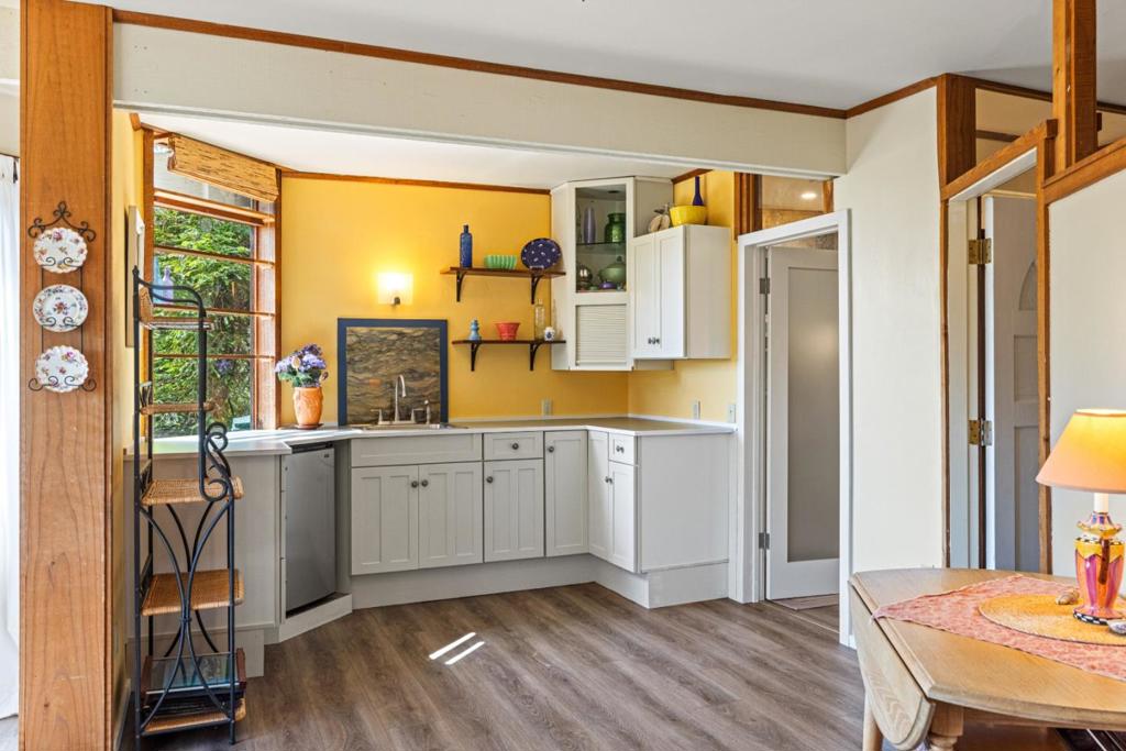 Mid-century redwood home on a Carmel hillside with views, sunlit interiors, and terraced gardens. Main level offers 2 bedrooms and 1.5 baths; below, a separate permitted studio with 1 bath and private entrance, minutes from Carmel-by-the-Sea beaches, dining, and trails. Set among terraced gardens and soft coastal light, this distinctive mid-century home captures the essence of Carmel’s creative landscape. Built in the mid 1960s from locally sourced redwood, its design was inspired by Frank Lloyd Wright’s Usonian principles. Clerestory and intentionally symmetrical windows plus tall glass doors frame the surrounding landscape as living art. The main level offers about 1,528 sq ft of airy living space with decks overlooking colorful, seasonally blooming gardens. Below, the permitted studio’s flexible 510 sq ft layout with full bathroom makes an ideal guest suite, office, or artistic retreat. Lovingly cared for by one family since new, the property blends architecture, nature, and creative spirit in an exceptional location near white sand beaches.