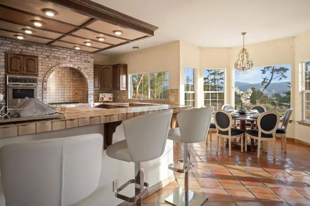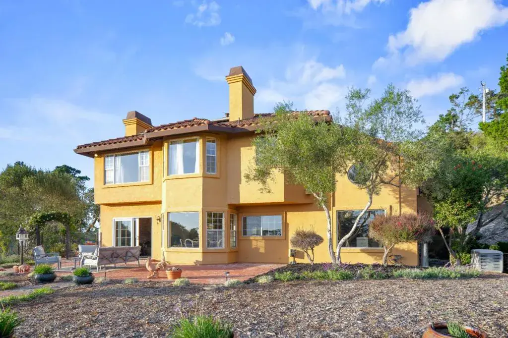 Nearly secluded within the prestigious enclave of Rancho Mar Monte, this custom-built Spanish Mediterranean estate offers exceptional privacy and timeless elegance just five minutes from downtown Carmel-by-the-Sea. Set on approximately 1.3 acres, the residence spans 4,631 square feet of refined open-concept living space, with sweeping valley views from most rooms. The home features five bedrooms and four bathrooms, showcasing Spanish tile and solid oak flooring, rich mahogany doors, and soaring ceilings that create an airy, inviting atmosphere. Bay windows and abundant natural light highlight the formal living and dining rooms, while multiple fireplaces add warmth and character throughout. The gourmet kitchen is designed for both everyday living and entertaining, equipped with high-end appliances, a butcher-block island, and a spacious chefs pantry. A formal dining room, breakfast nook, and breakfast bar provide versatile dining options. Cozy evenings await in the main living room or the separate family room, each centered around a fireplace. The expansive primary suite offers stunning valley views, its own fireplace, and a spa-inspired bathroom with jetted tub, separate stall shower, and an additional fireplace.