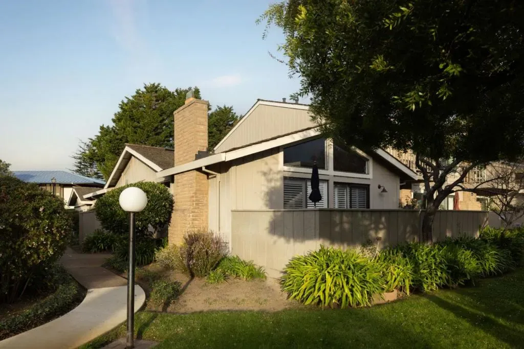 Tucked away in a desirable Carmel enclave, this refined single-level residence offers an exceptional blend of privacy, comfort, and coastal elegance. One of only eight single-story homes in the community, the residence features an open, light-filled floor plan highlighted by soaring vaulted ceilings and thoughtfully curated upgrades. The inviting living space centers around a gas log fireplace, creating a warm yet sophisticated ambiance. Two well-appointed bedrooms are complemented by a versatile den, ideal for a private office, library, or guest retreat. Wood laminate flooring, upgraded electrical, and an indoor laundry room enhance everyday living. Three private exterior decks and patios provide seamless indoor-outdoor flow, perfect for morning coffee or evening entertaining. An attached two-car garage with EV charger adds convenience. Just moments from Crossroads, the Barnyard, and Carmel Rancho, this home captures the essence of effortless Carmel livingpeaceful, polished, and perfectly positioned.